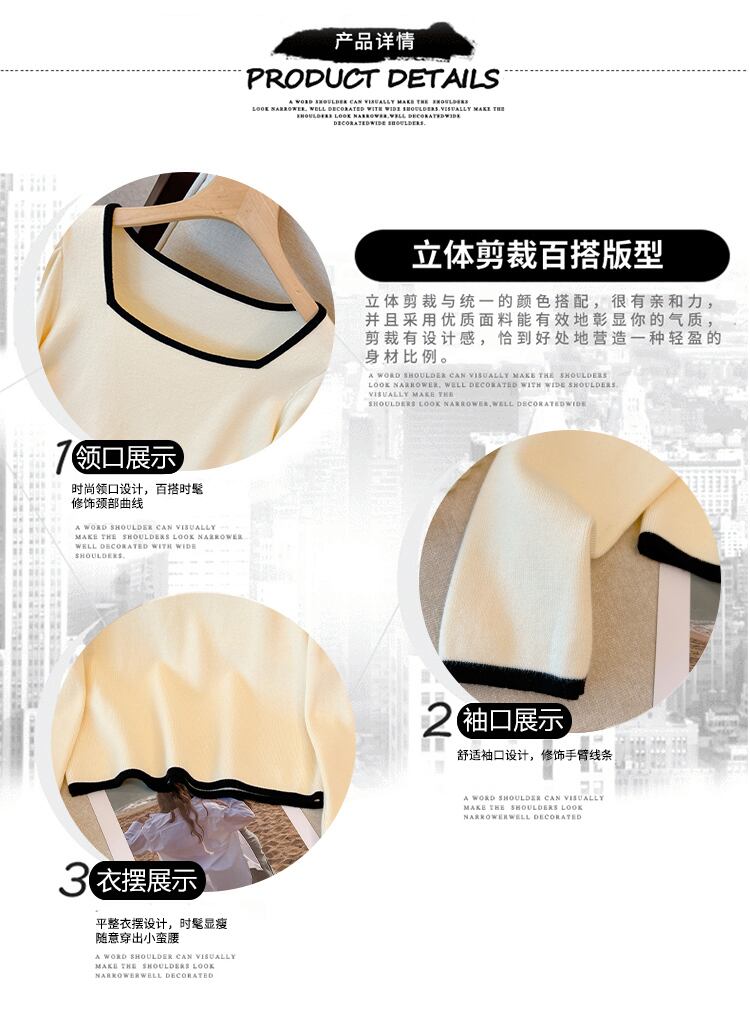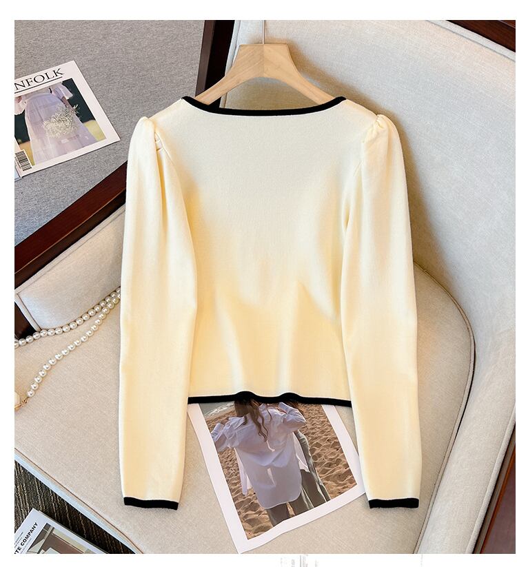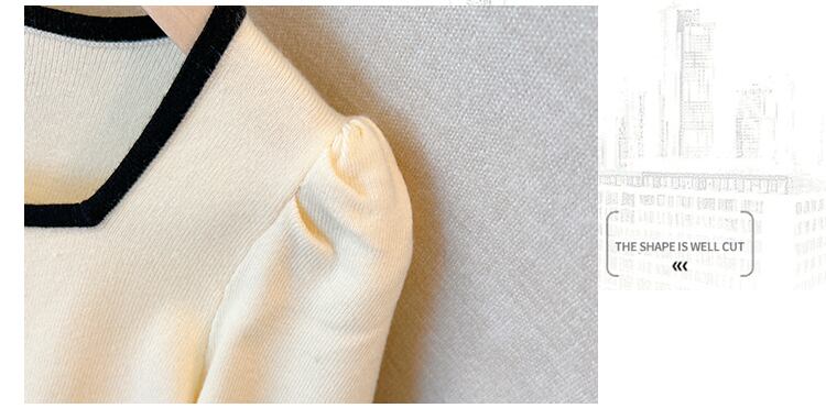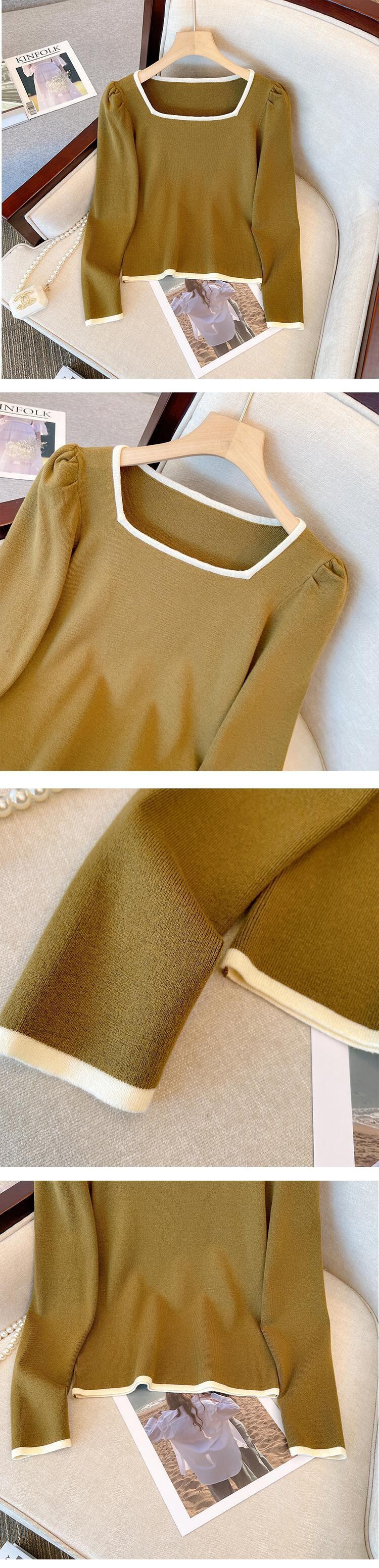 プラスサイズの婦人服 2023 ファットシスター春の新パフスリーブスクエアカラーコントラストカラーニット底入れシャツスリムセーター 大きめサイズ スプリング 春物 スクウェア 8884119281507358