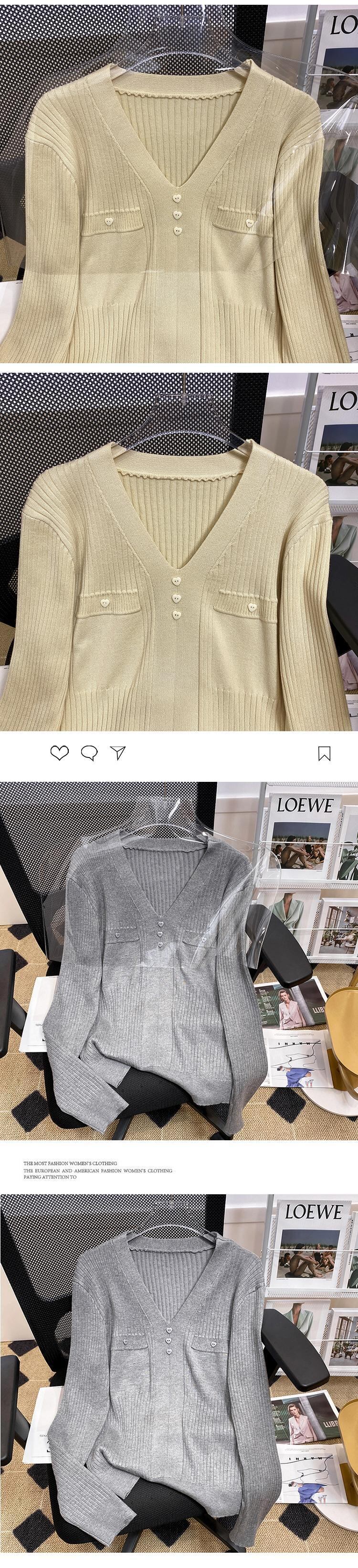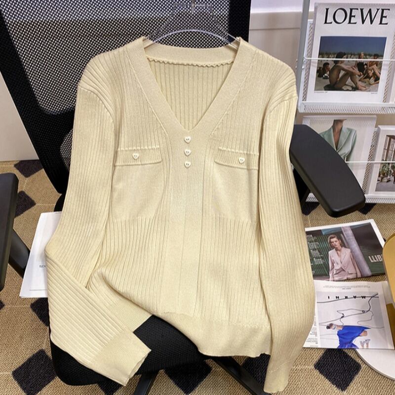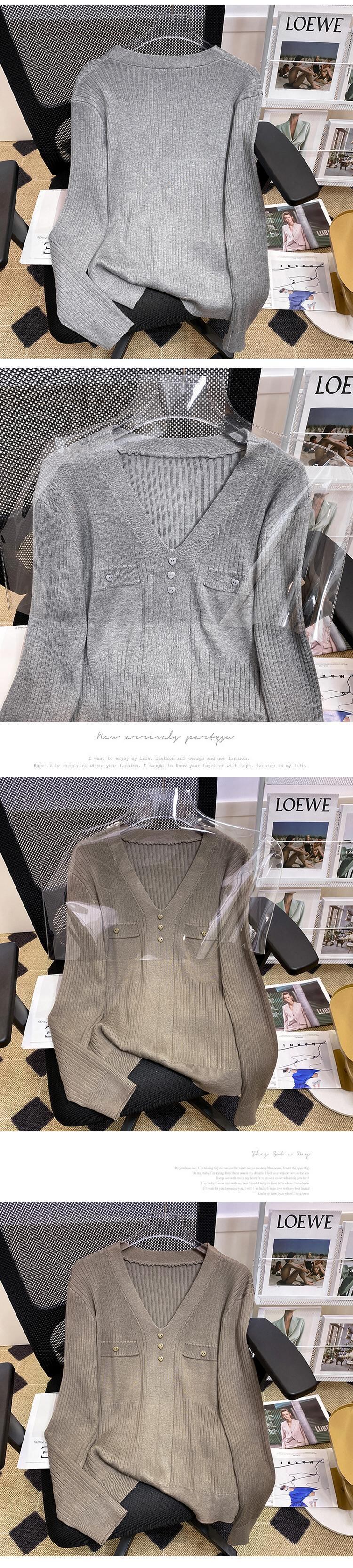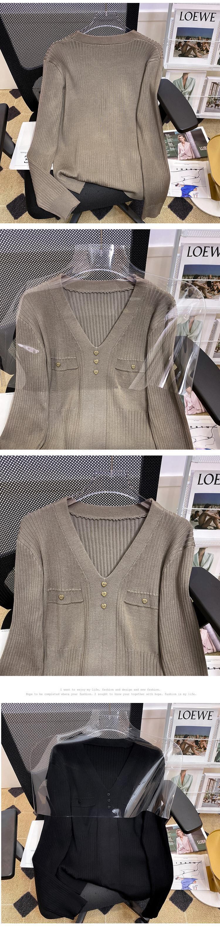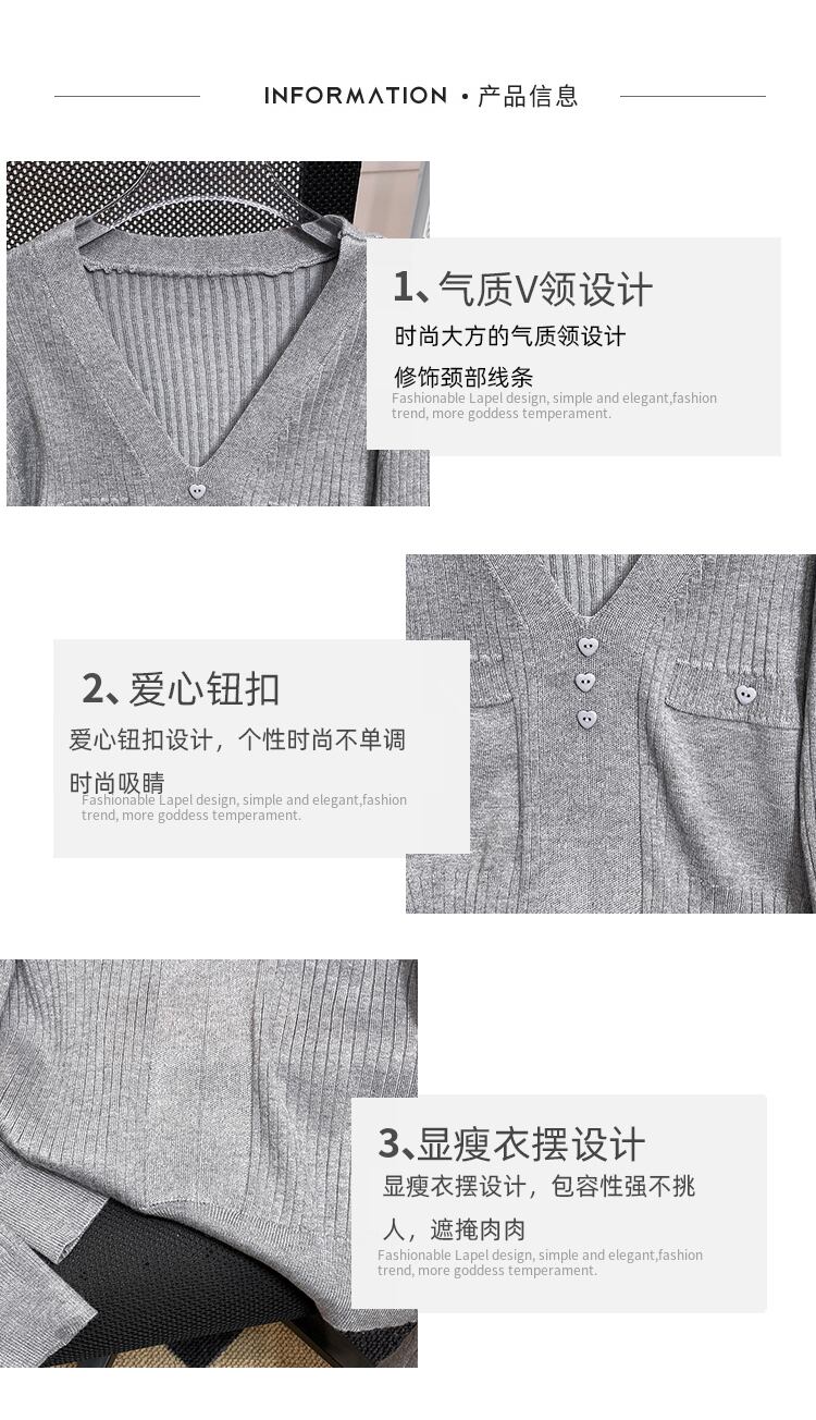 プラスサイズの婦人服 2023 春の新しいスタイルの太った姉妹オールマッチ eign スタイルルーズシックな V ネック気質長袖セーター ロング 大きめサイズ スプリング 春物 Vネック 8884167331930077
