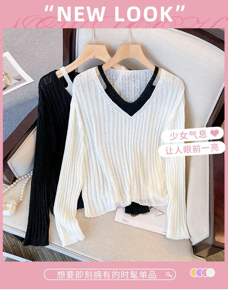 プラスサイズの婦人服 2023 ファットシスター春の新フェイク二枚 eign スタイルセーター底入れシャツ緩いニットトップ 大きめサイズ スプリング 春物 8884138995122922