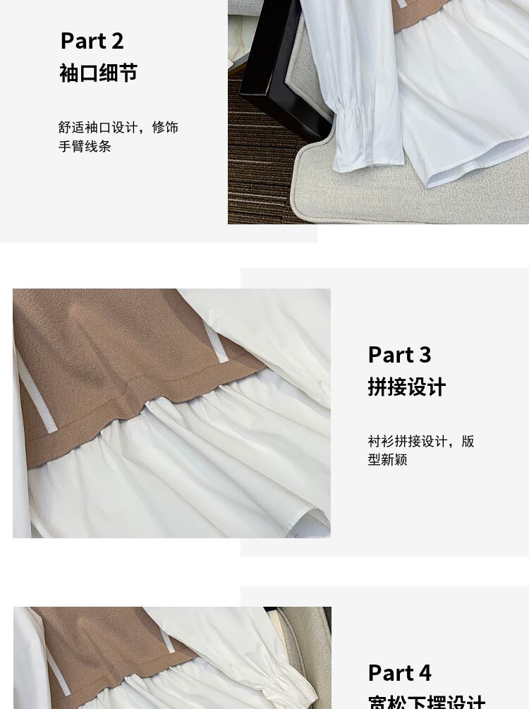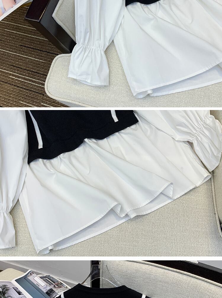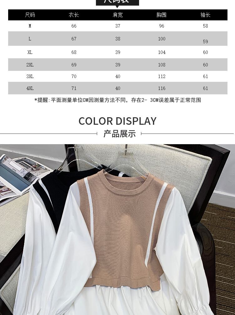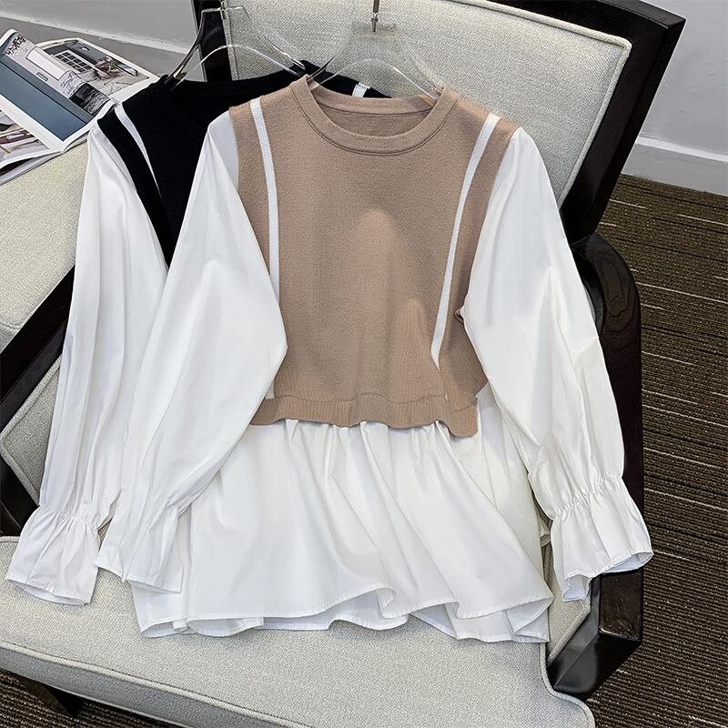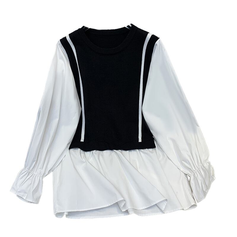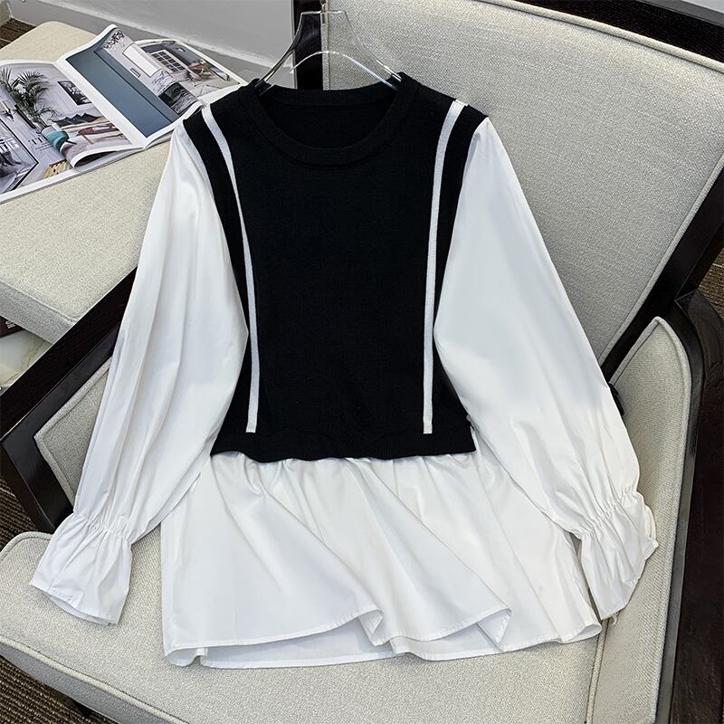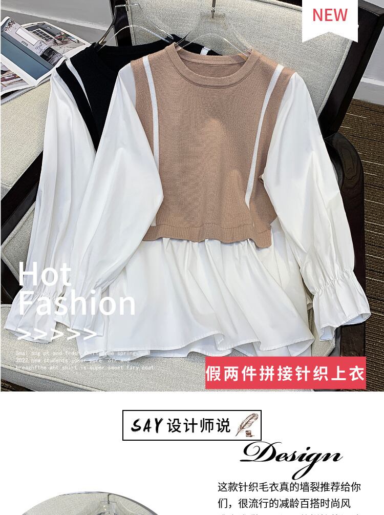 プラスサイズの婦人服 2023 春服脂肪姉妹新しい気質ゆったりと薄い偽ツーピーススプライシングニットトップス女性 大きめサイズ スプリング 春物 8884156155869507