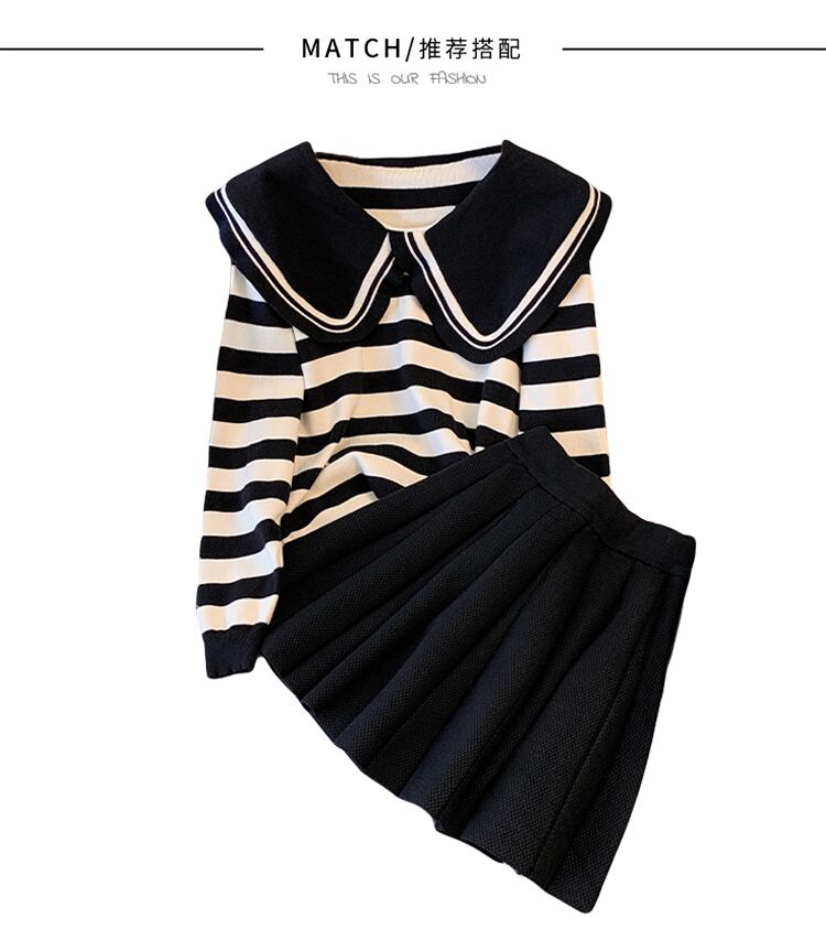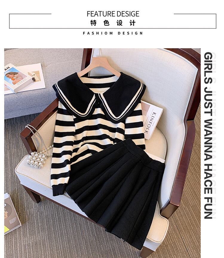 色:シングルストライプセーター,単一の黒いセーター,シングルスカート,ストライプツーピース,黒のツーピース