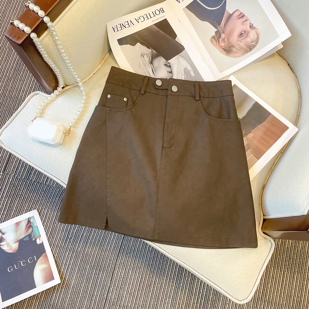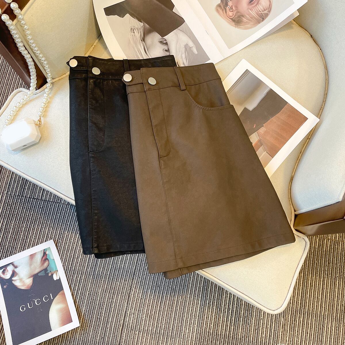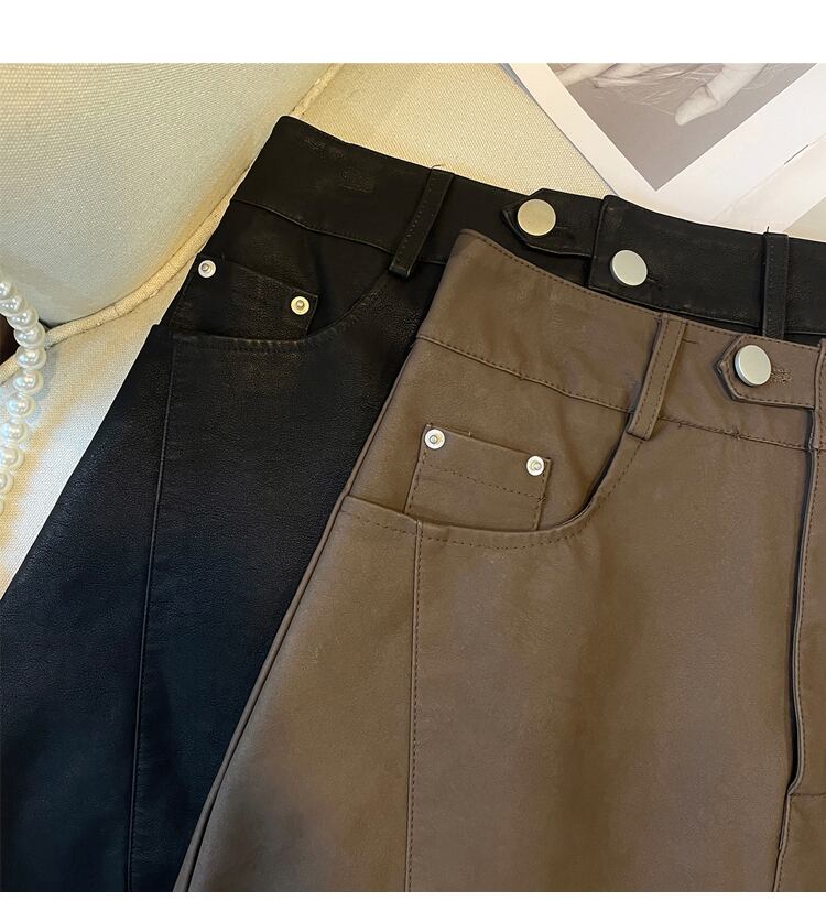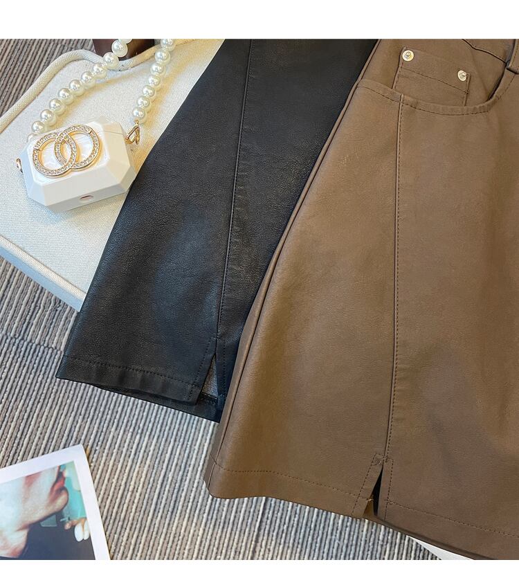 プラスサイズの婦人服 2023 春の新しい痩身と美脚ロング pu レザースカートショートスカート脂肪姉妹ハイウエストと痩身スカート ハイウェスト 大きめサイズ スプリング 春物 8884141292213077