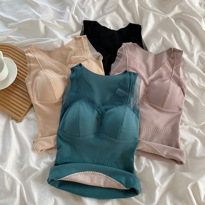 プラスサイズの婦人服 2023 トレンディな女性の春の新しいファットシスター固定カップ形状の暖かい腹の底入れの下着とベストの潮 大きめサイズ スプリング 春物 8884159313466044