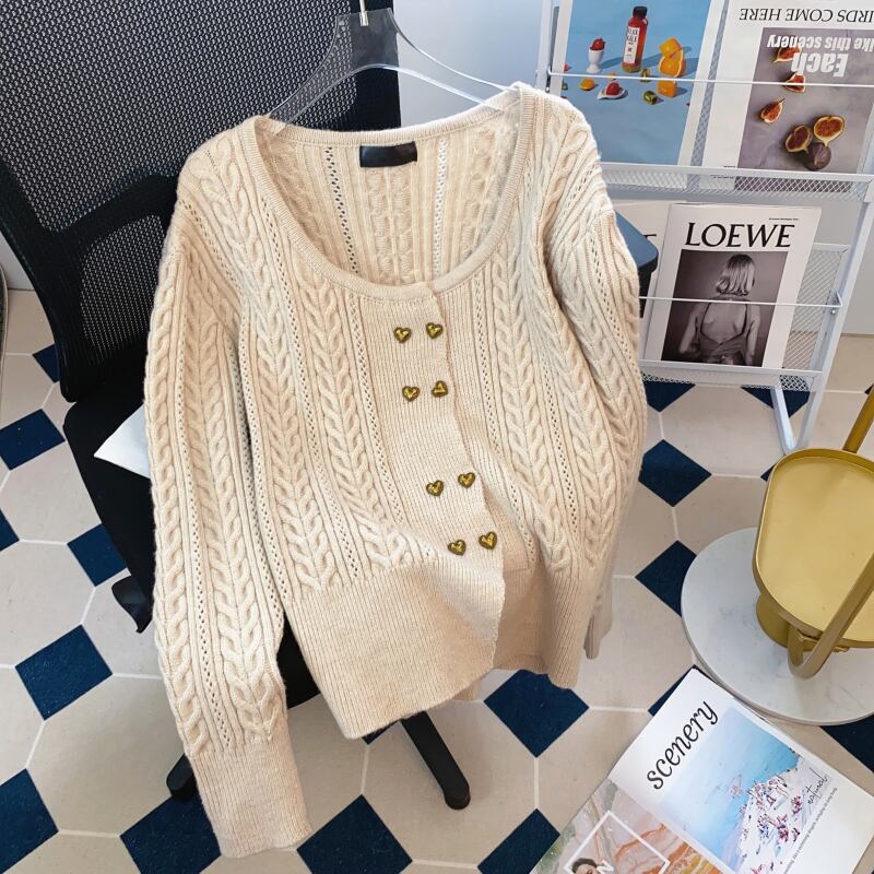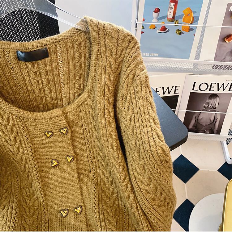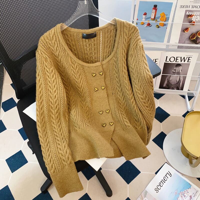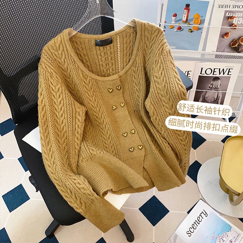 プラスサイズの婦人服 2023 春の新ファットシスターレトロ複列ラブボタン無地スリムカーディガンニットセーター女性 大きめサイズ スプリング 春物 ソリッドカラー 8884168149096431