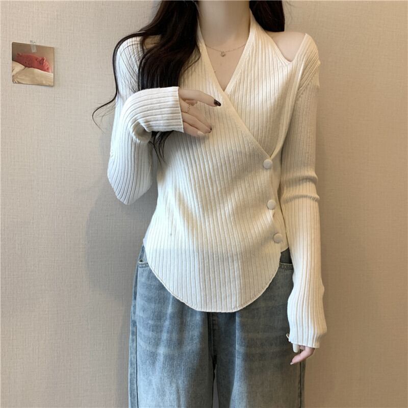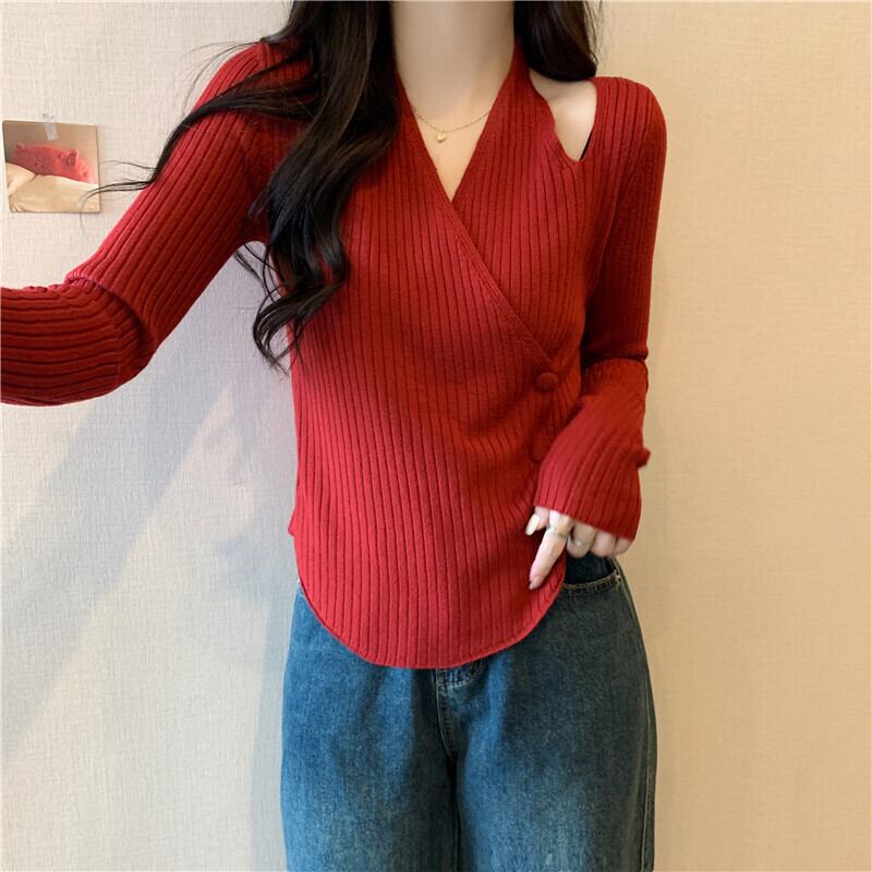大きいサイズの婦人服 2022 トレンディな女性の冬の新しいファット シスター フレンチ スタイル オフショルダー ホルター ネック デザイン感のある eign スタイル スリム フィット ニット セーター 大きめサイズ ウィンター 冬物 8884148400366090