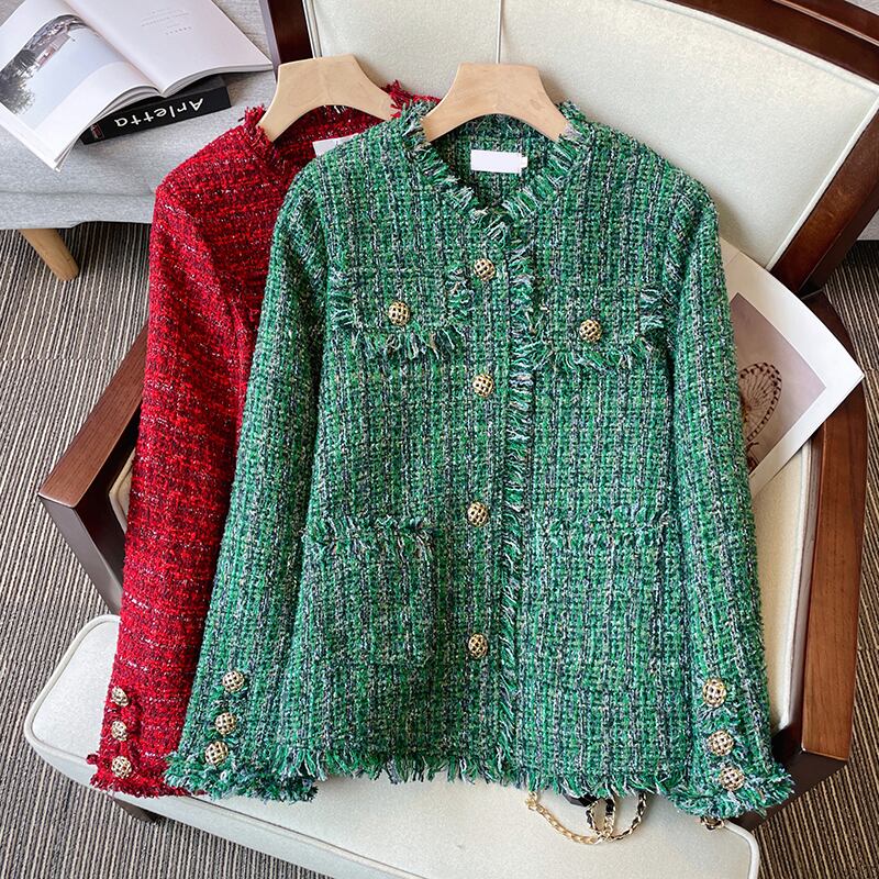 プラスサイズの婦人服2023ファットシスター春の新しいスタイルのeignスタイルの薄いツイードフレンチ気質のカーディガンジャケット 大きめサイズ スプリング 春物 8884111686442255