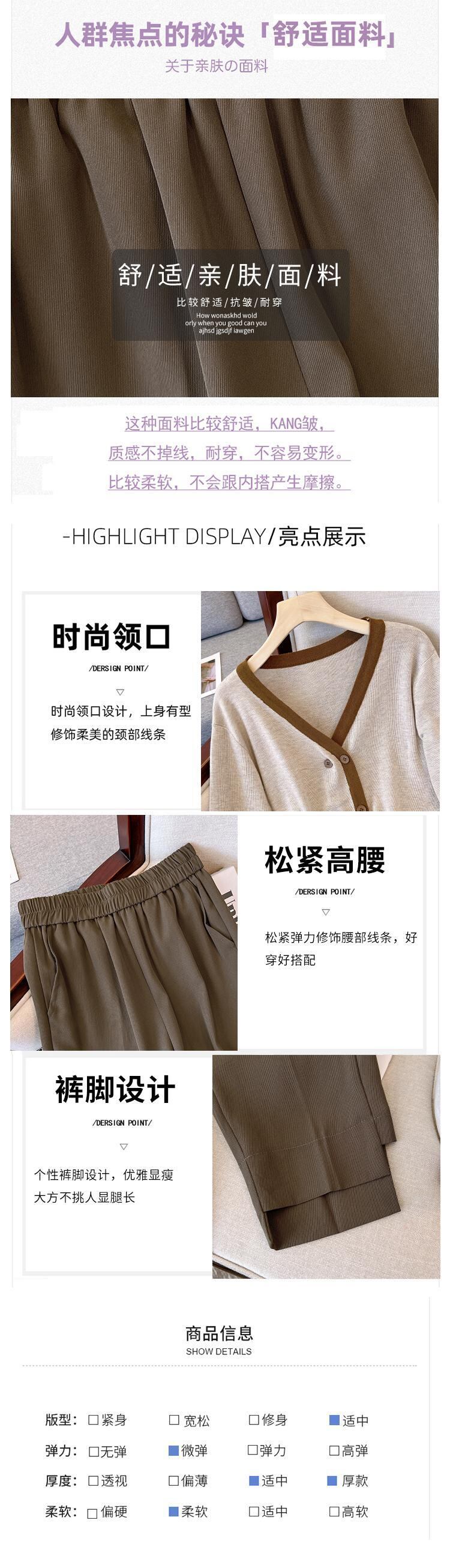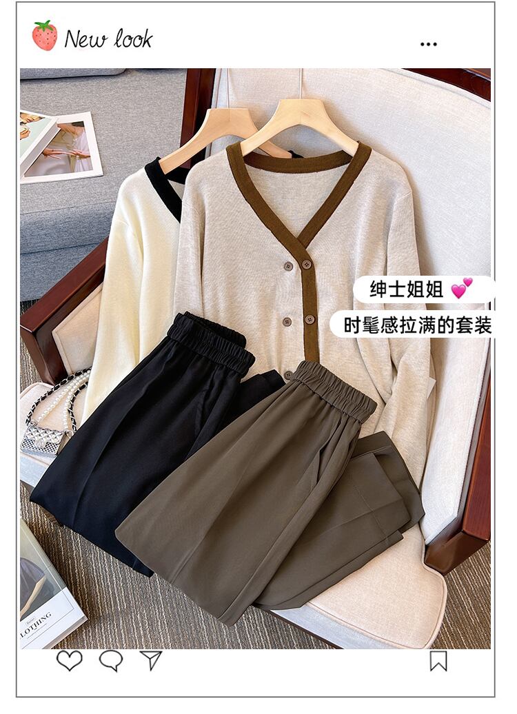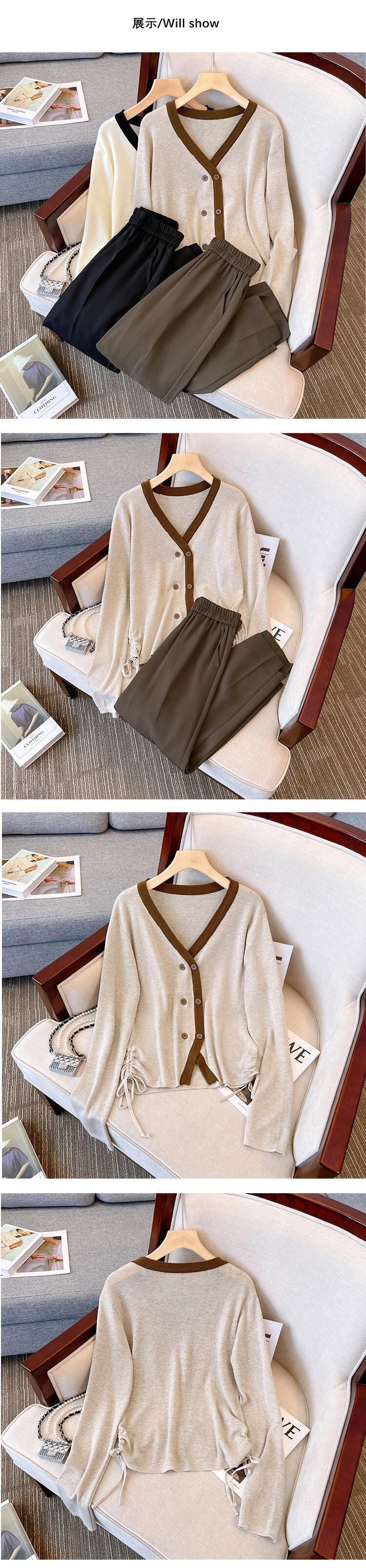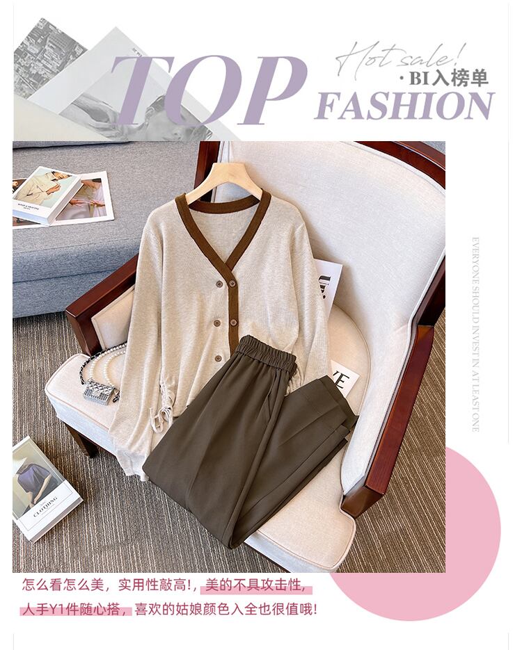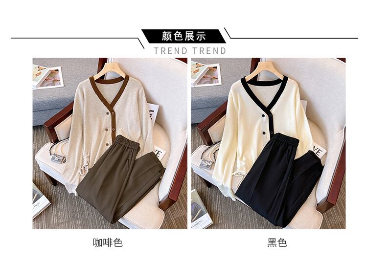 プラスサイズの婦人服2023ファットシスター春の新色コントラストVネック長袖セーター9点スーツパンツ2点セット ロング 大きめサイズ スプリング 春物 8884168623834894