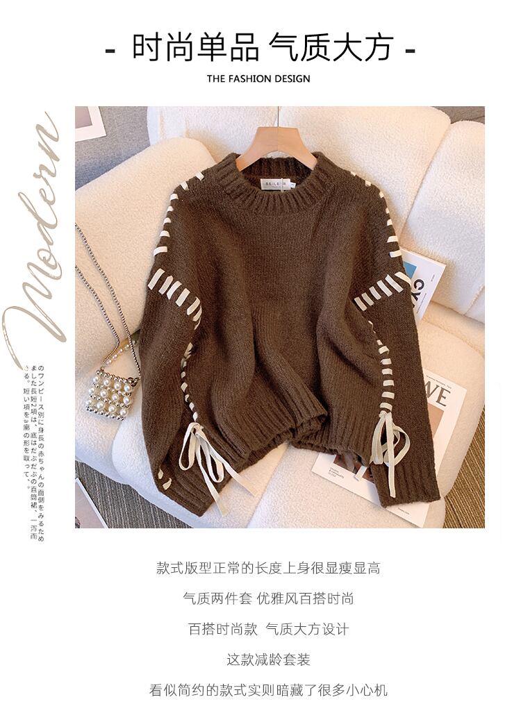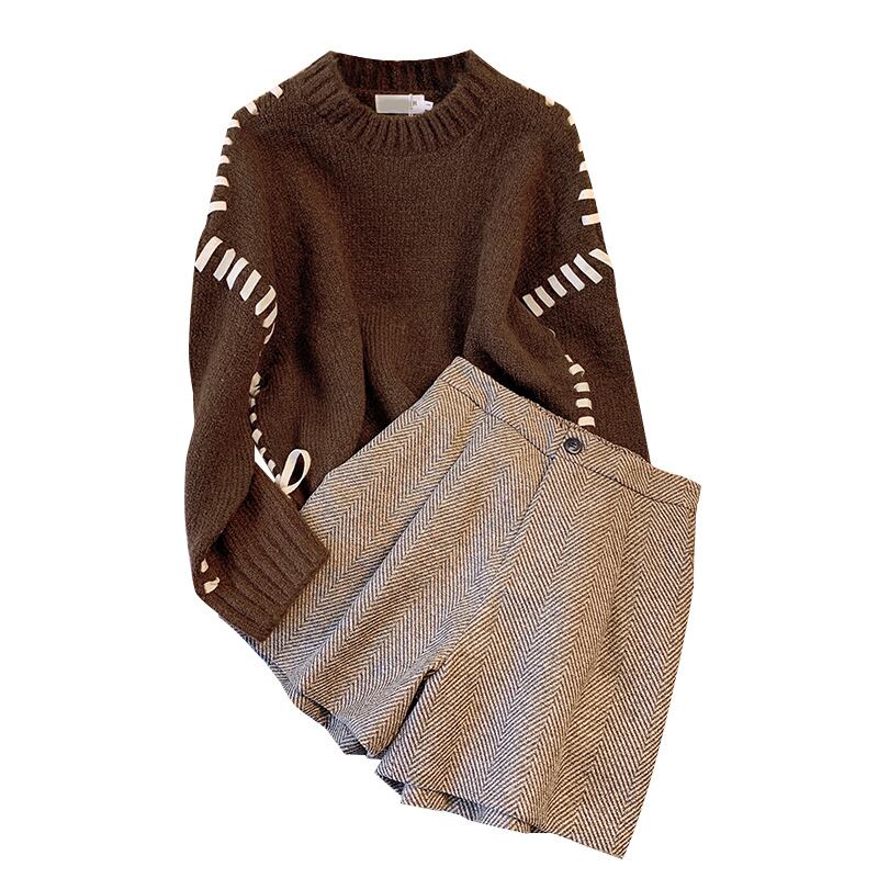 プラスサイズの婦人服 2023 ファットシスター春の新ファッションスリム長袖セーターウールショートパンツ 2 点セット ロング 大きめサイズ スプリング 春物 8884116258079536