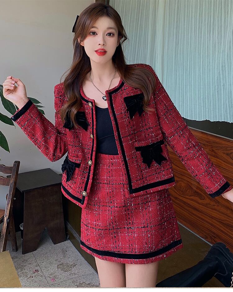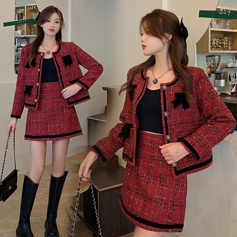 プラスサイズの婦人服 2023 ファットシスター春の新しい eign スタイルスリムウールちょう結びコートスカート 2 点セット リボン 大きめサイズ スプリング 春物 8884196329574063