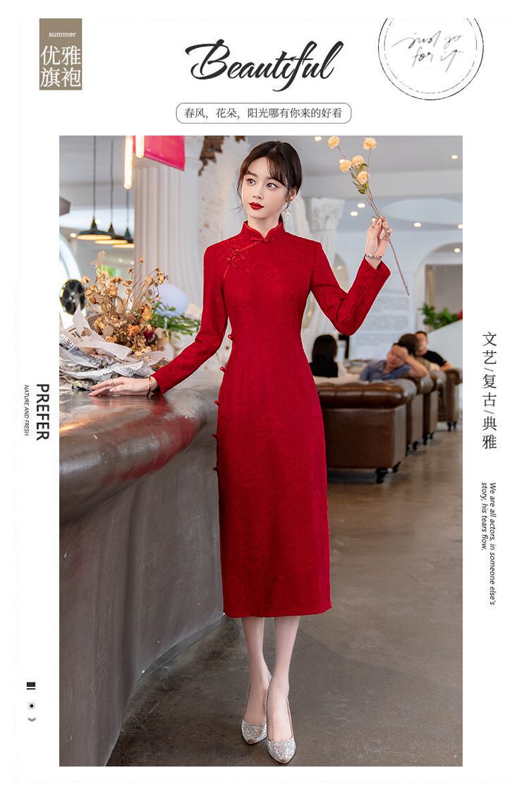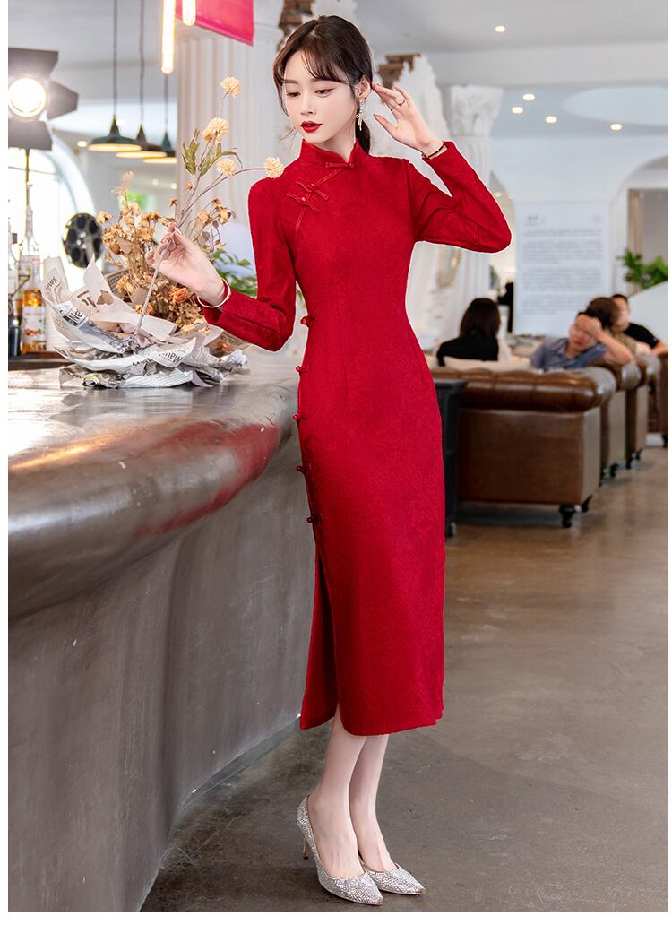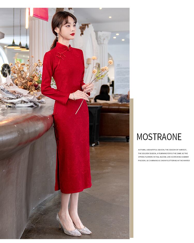 大きいサイズの婦人服 2023 春服脂肪姉妹新しいレトロな立ち襟ウエスト チャイナ ドレス スカート スリット長袖ドレス ロング 大きめサイズ スプリング 春物 8884129997249784