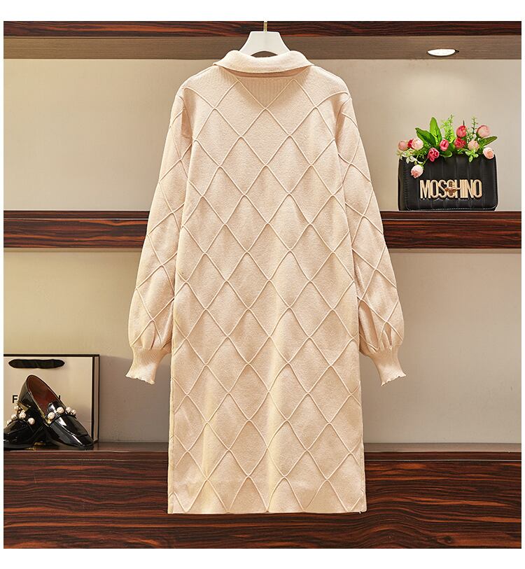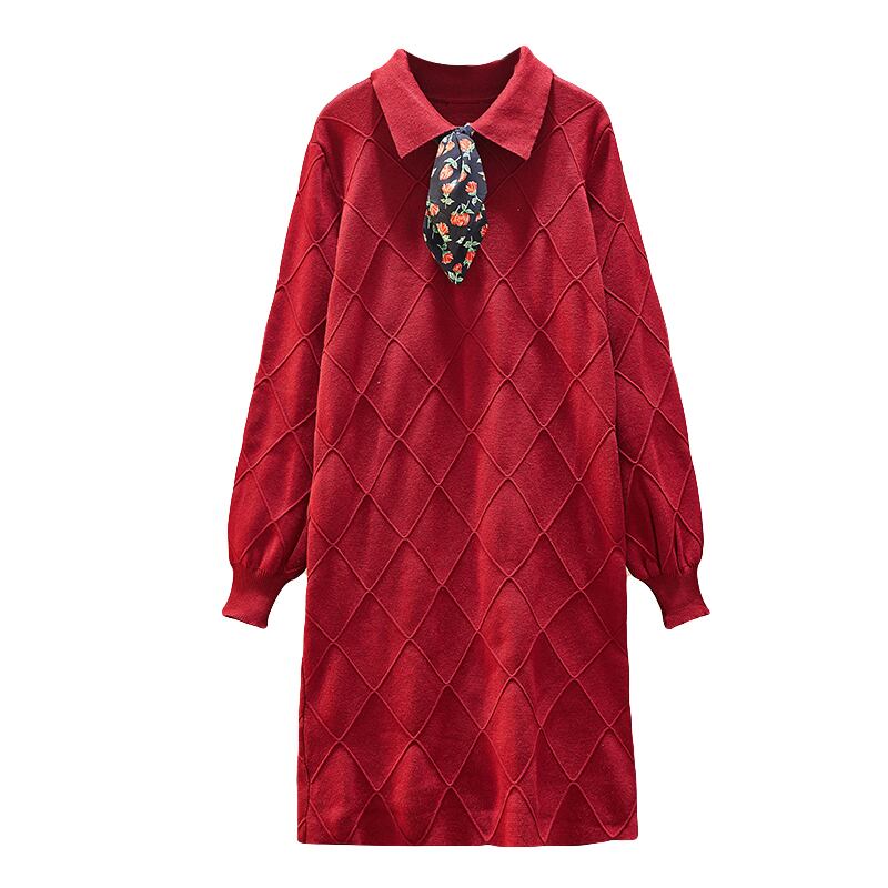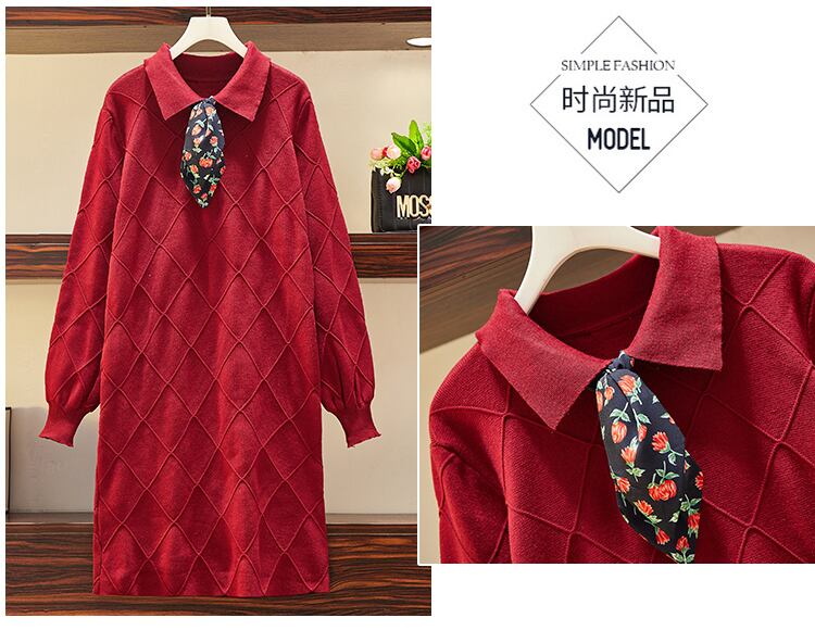 プラスサイズの婦人服 2023 トレンディな女性の春の新しい太った姉妹スタイルの気質のゆったりとした薄いニットの底入れドレス 大きめサイズ スプリング 春物 8884148567675068