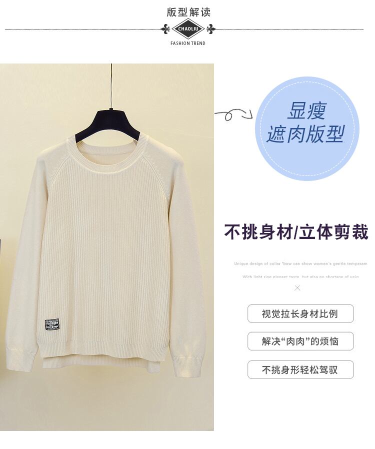 プラスサイズの婦人服 2023 トレンディな女性の春の新しいファットシスターファッション eign スタイル肥厚ニットゆったりと薄いボトムスセーター 大きめサイズ スプリング 春物 8884135470276438