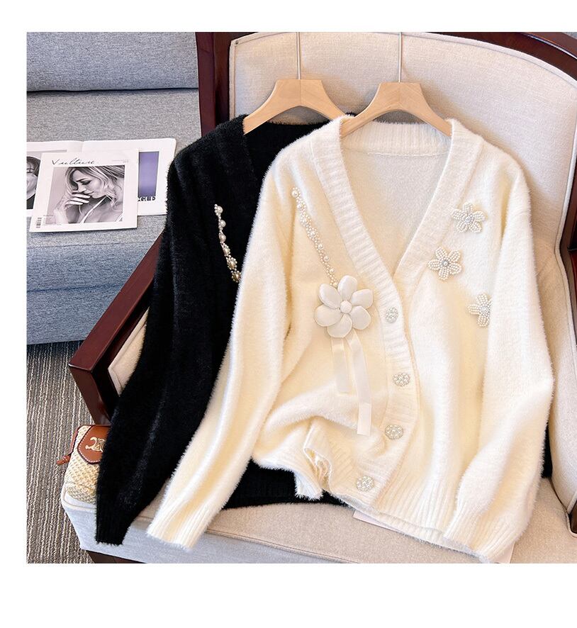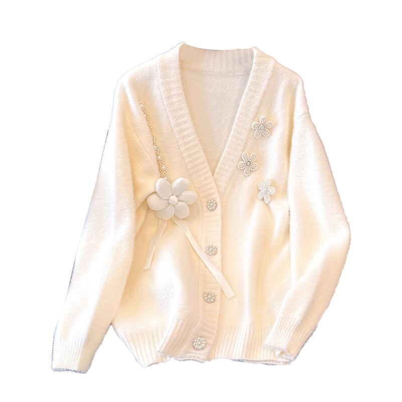 プラスサイズの婦人服2023ファットシスター春の新しいeignスタイルの立体フラワーニットカーディガンオールマッチセータージャケット女性 大きめサイズ スプリング 春物 フラワーデザイン 8884150636846518