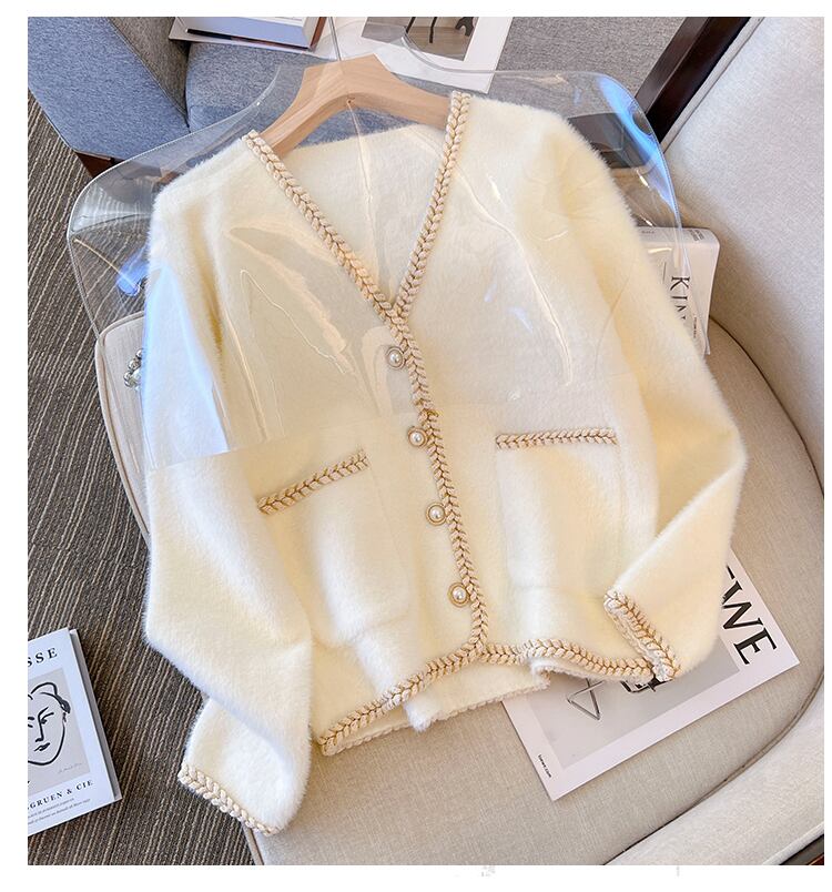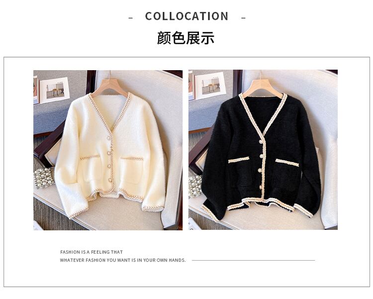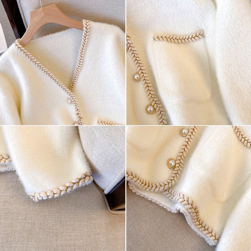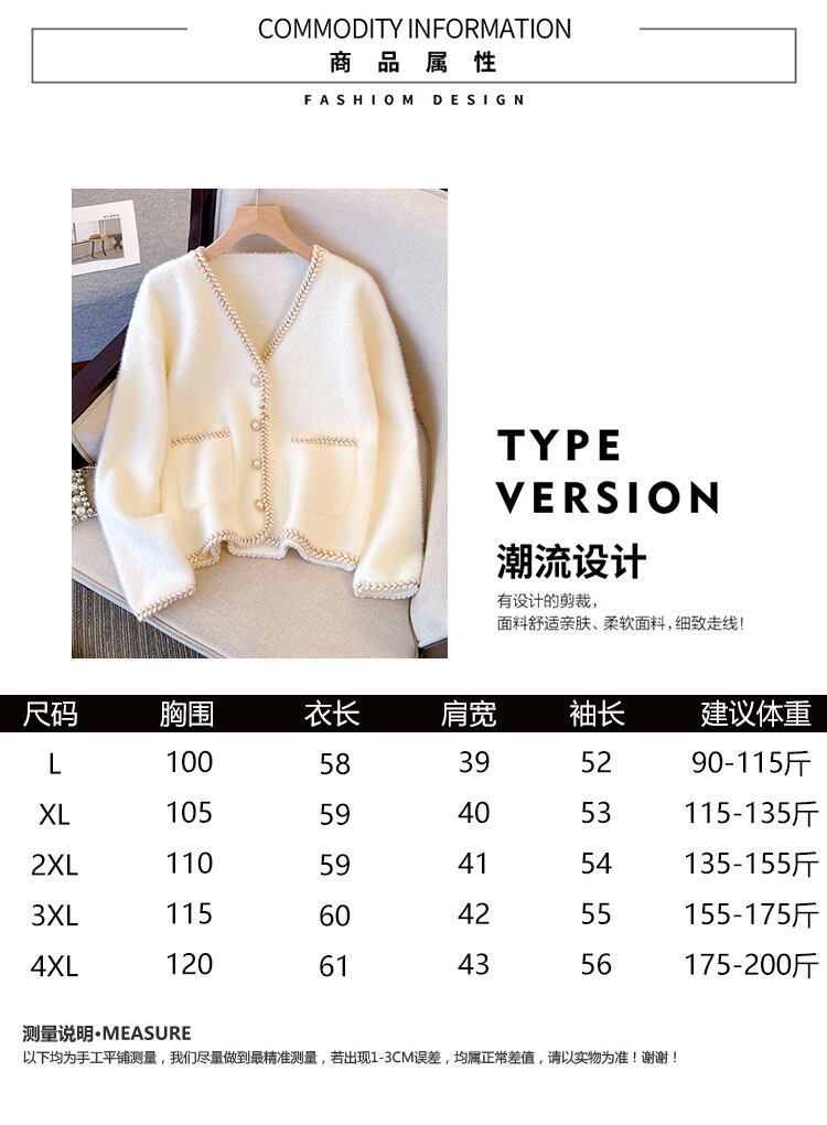 プラスサイズの婦人服 2023 春服ファットシスターズ新ファッションゆるい v ネック模造ミンクベルベットカーディガンセータージャケット 大きめサイズ スプリング 春物 Vネック 8884169714960213
