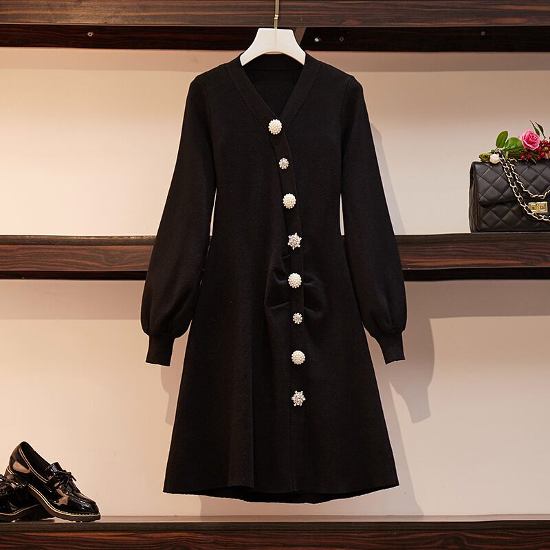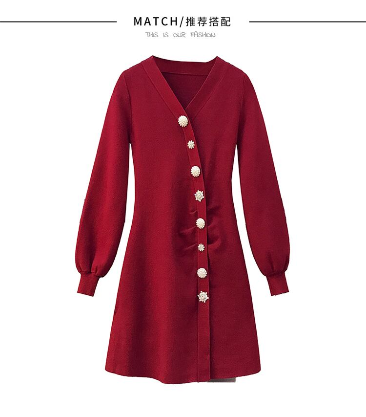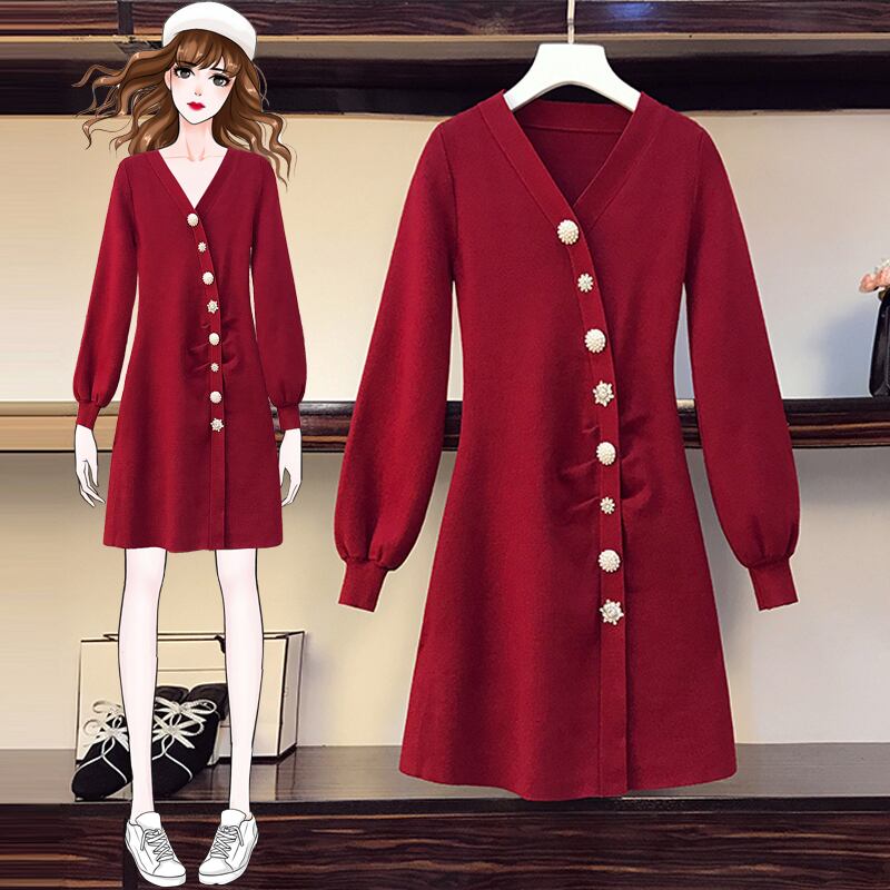 プラスサイズの婦人服2023ファットシスター春の新しいeignスタイルの年齢を減らすVネックデザインの痩身プリーツドレス 大きめサイズ スプリング 春物 888416159394662