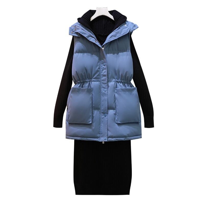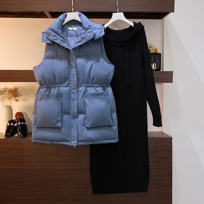 プラスサイズの婦人服 2022 トレンディな女性の冬の新しい太った姉妹バージョン緩い肥厚ベスト チョッキ ドレス 2 点セット 大きめサイズ ウィンター 冬物 8884199353184657