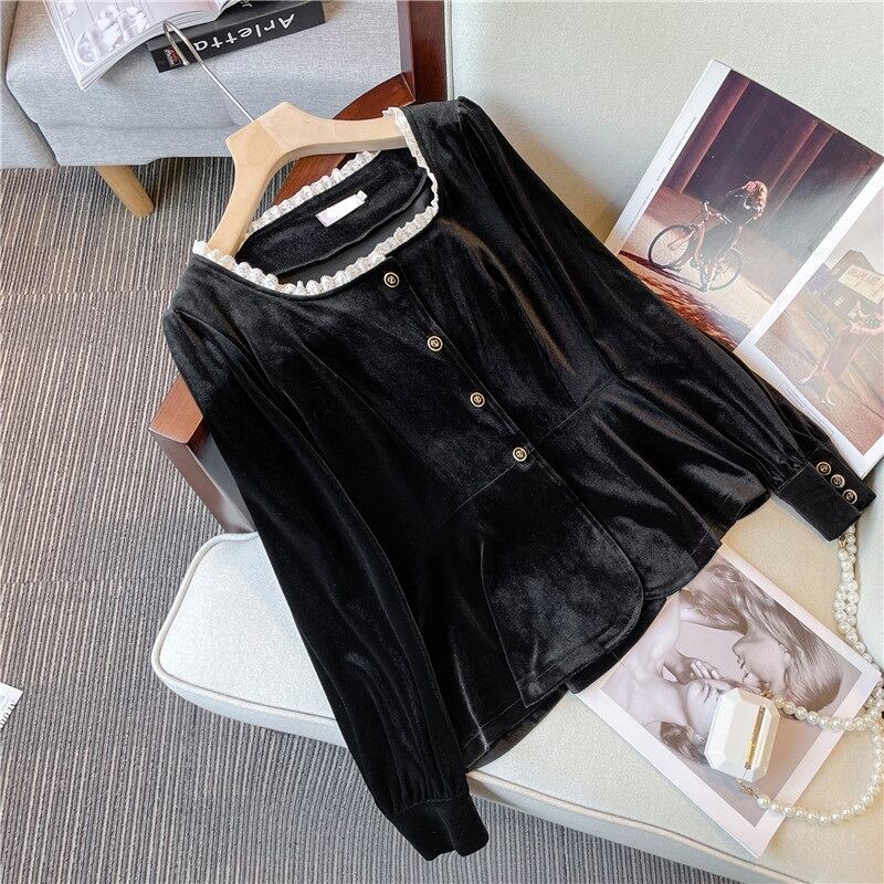 プラスサイズの婦人服 2023 トレンディな女性の春の新しいファットシスター長袖ファッションデザインセンスニッチルース痩身シャツ潮 ロング 大きめサイズ スプリング 春物 8884165845350036
