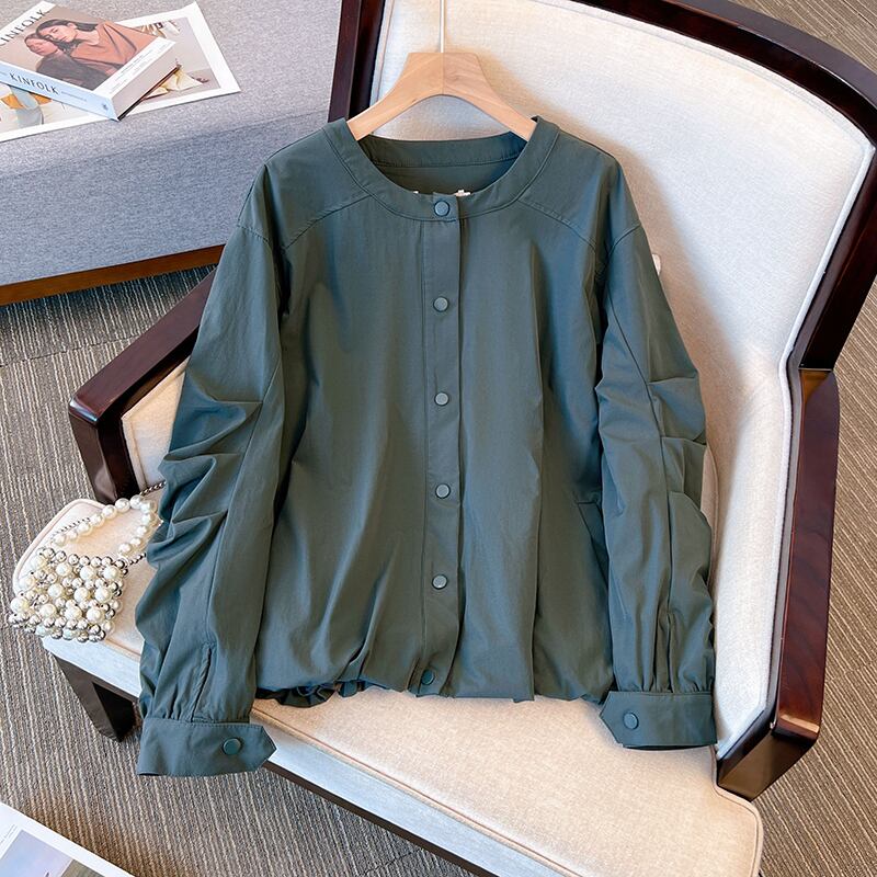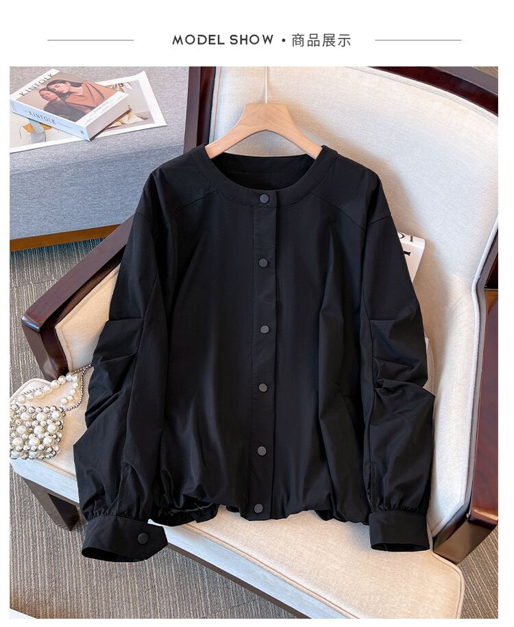 プラスサイズの婦人服 2023 春服ファットシスターズ新しいラウンドネック緩い肉カバーリングカジュアル薄いジャケットコートウインドブレーカー 大きめサイズ スプリング 春物 Oネック 8884153642553944