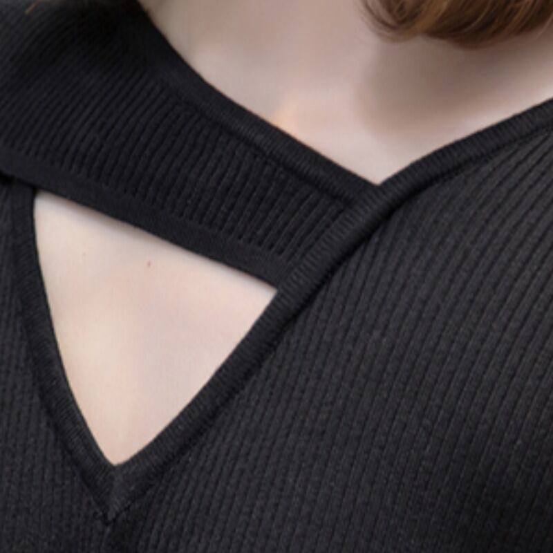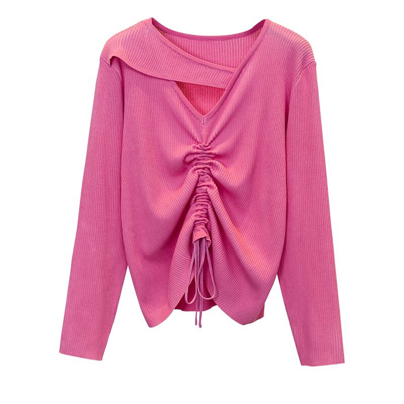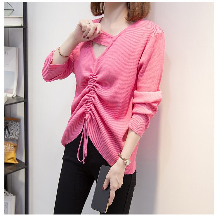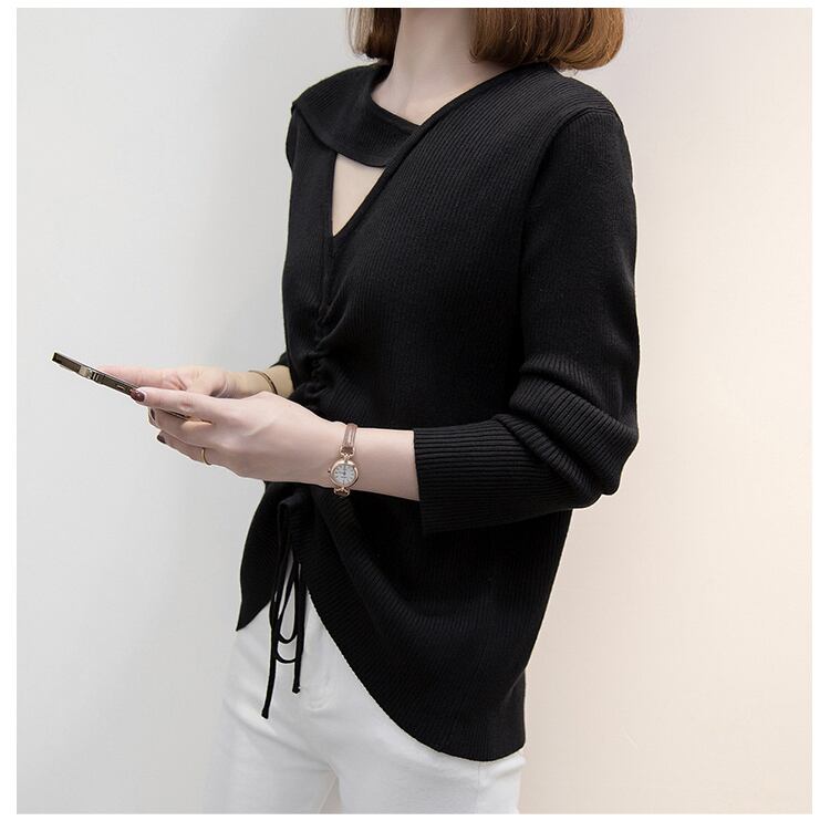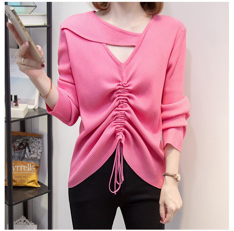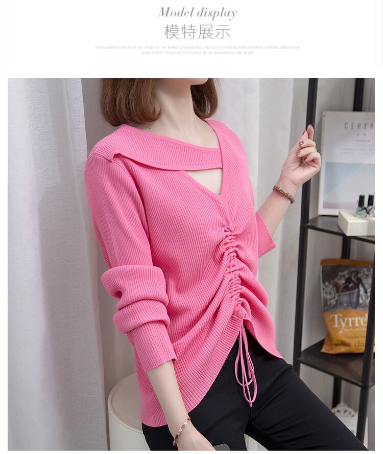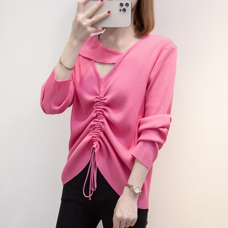 プラスサイズの婦人服 2023 春の新脂肪姉妹巾着プリーツデザイン中空無地長袖ニットセーター女性 ロング 大きめサイズ スプリング 春物 ソリッドカラー 8884177496812412