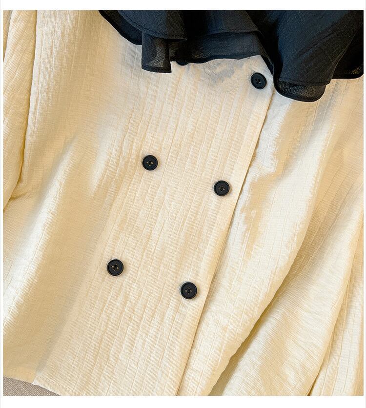 プラスサイズの婦人服 2023 ファットシスター春の新フリルシャツデザインセンスオールマッチスプライシングシフォントップ女性 大きめサイズ スプリング 春物 8884196952973642