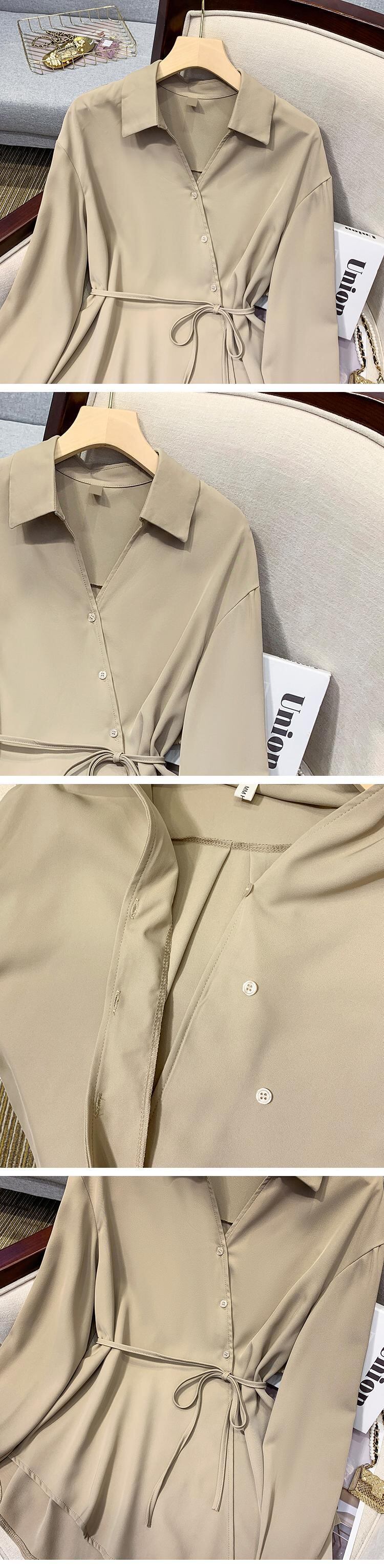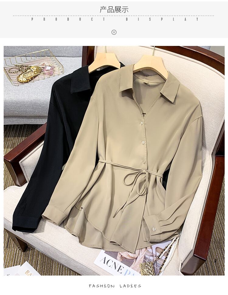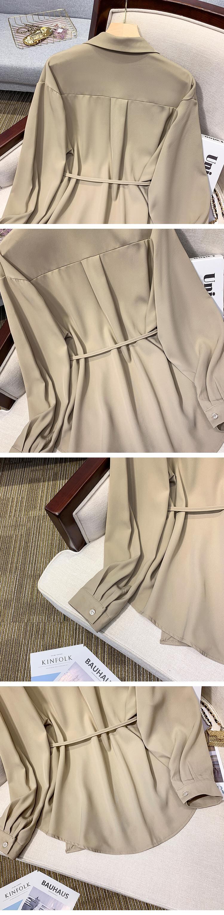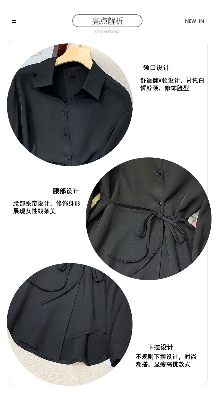 プラスサイズの婦人服 2023 脂肪姉妹春の新ファッション痩身デザインセンス気質ベルト長袖シャツ女性 ロング 大きめサイズ スプリング 春物 ハーネス 8884198102877843