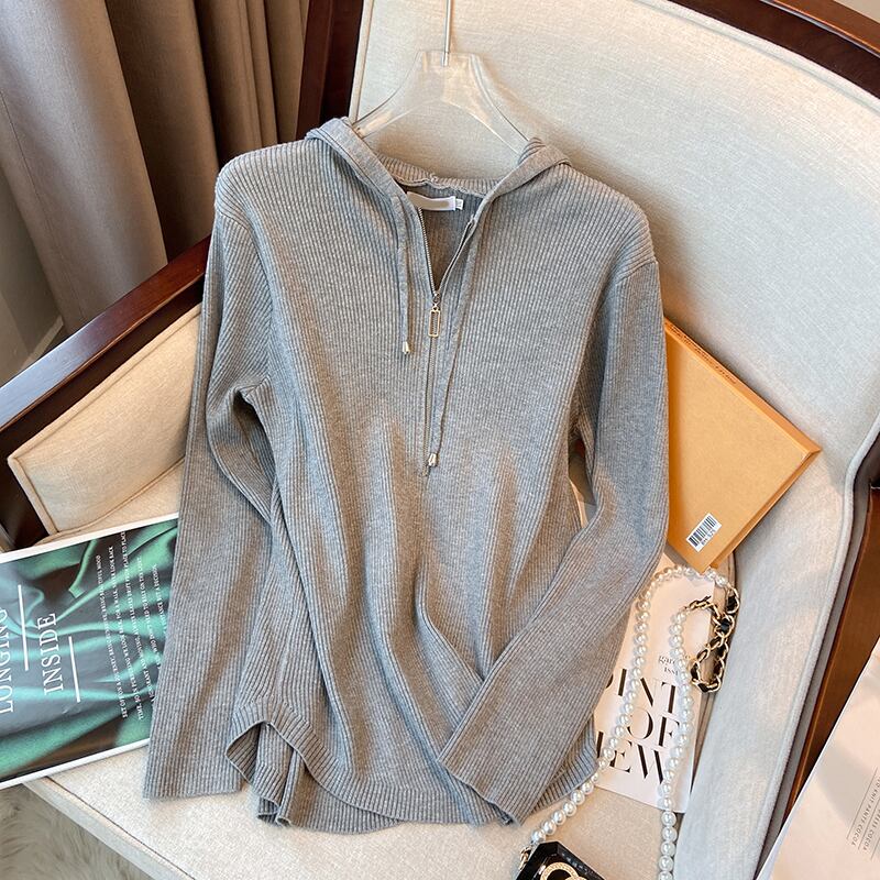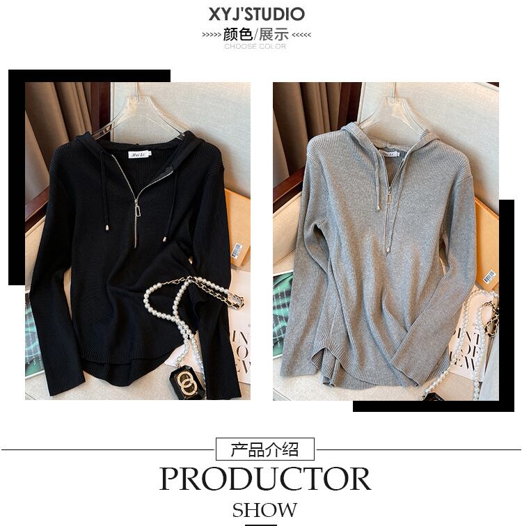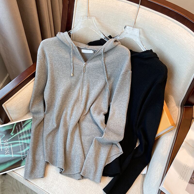 大きいサイズの婦人服 2023 春服ファット シスターズ新しいウエスタン スタイル ニット フード付きトップス オールマッチ ルーズ ジッパー セーター 大きめサイズ スプリング 春物 8884177927461256