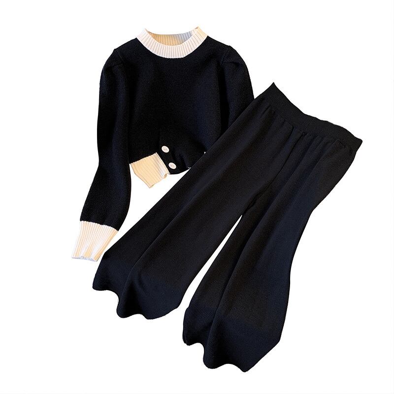 大きいサイズの婦人服 2023 春服ファットシスターズ新しいボトムスニットセータールーズトップワイドレッグパンツツーピーススーツ 大きめサイズ スプリング 春物 888417985196769