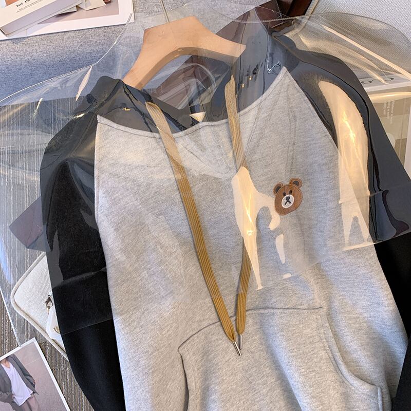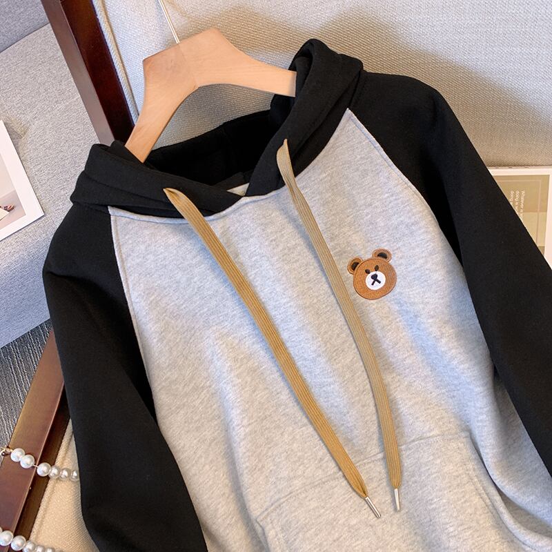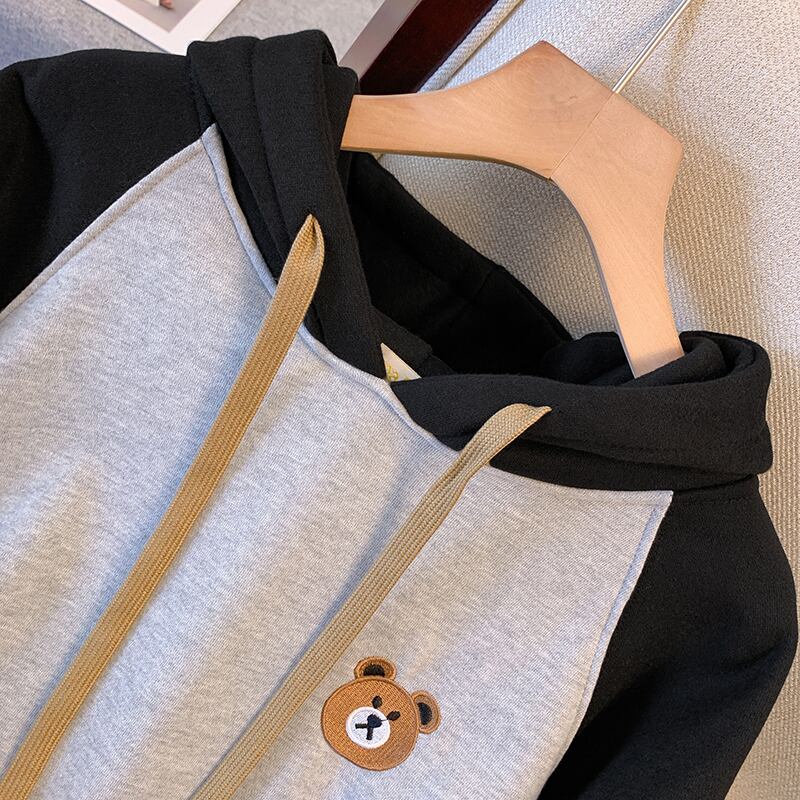 プラスサイズの婦人服 2023 ファットシスター春の新しいゆるくて薄い刺繍プラスベルベット肥厚プルオーバーフード付きセーター 大きめサイズ スプリング 春物 8884110145260832