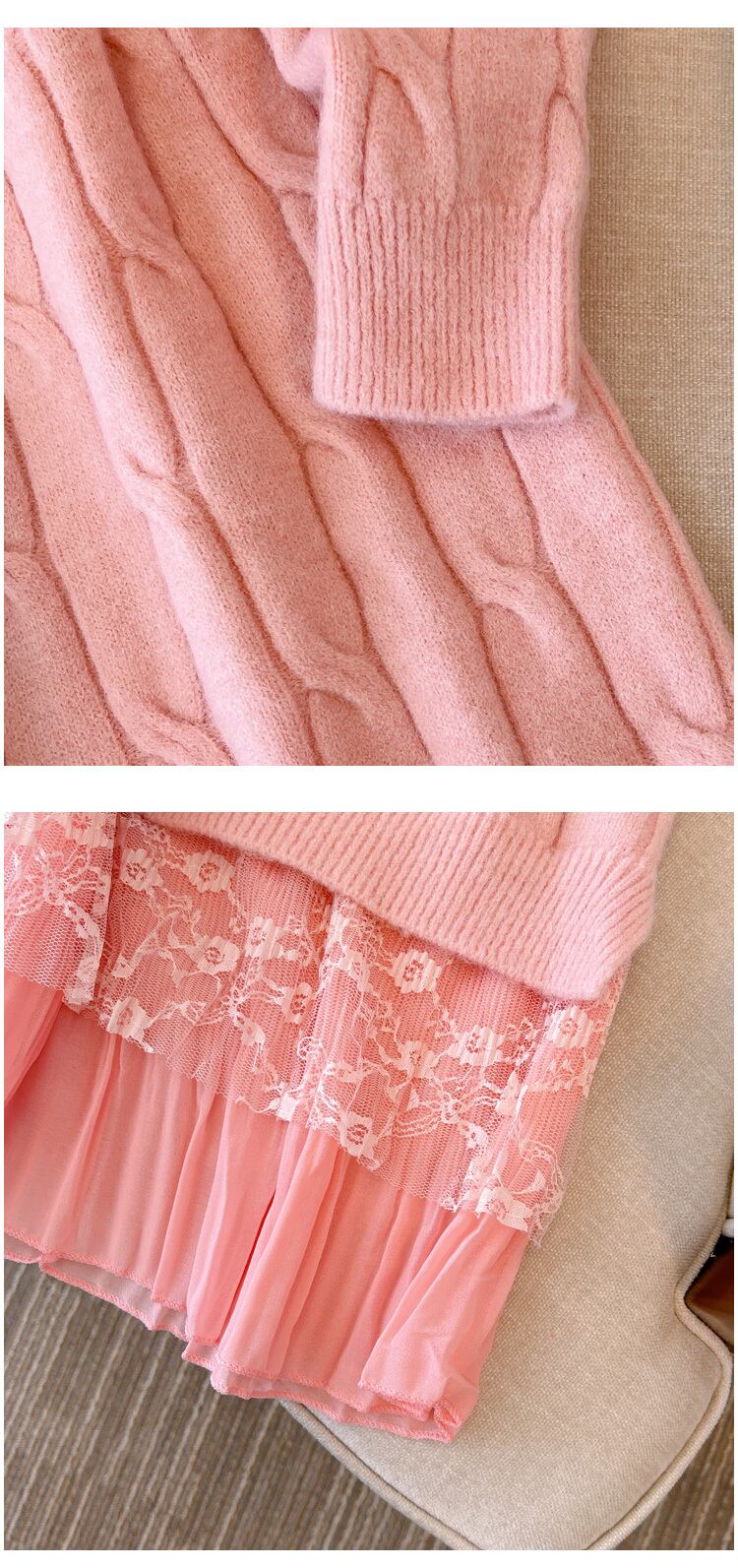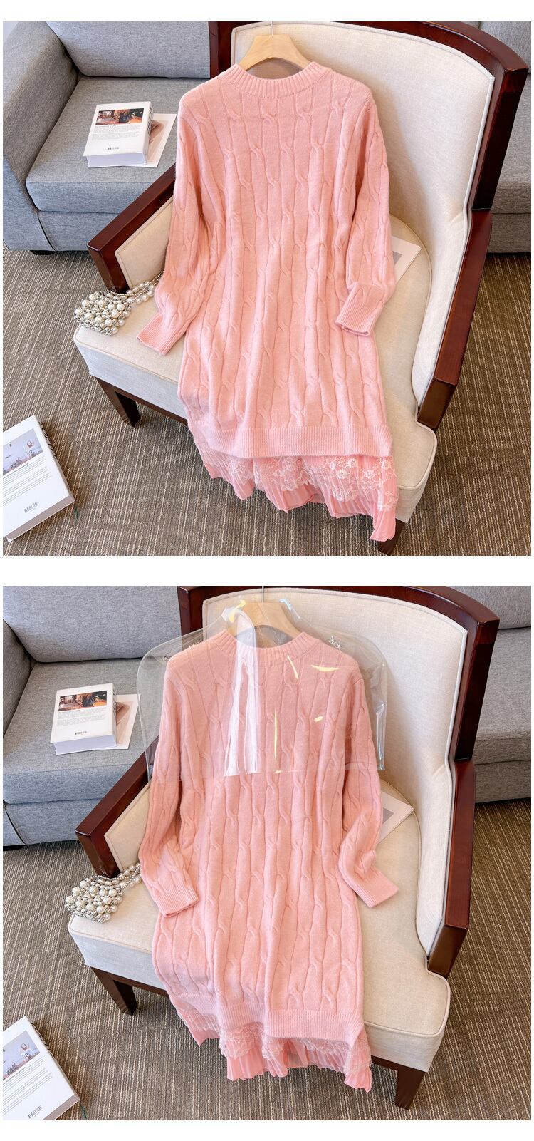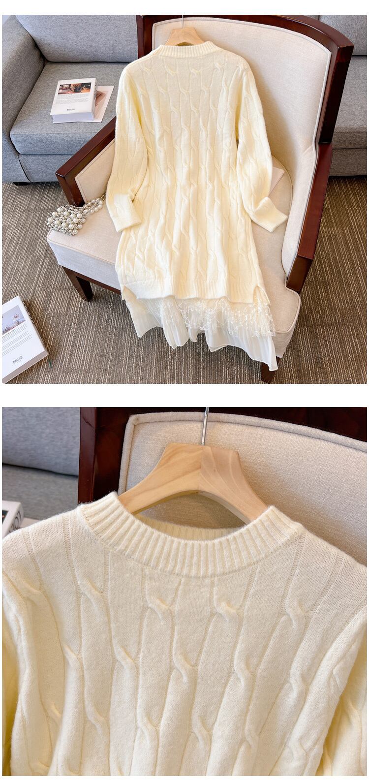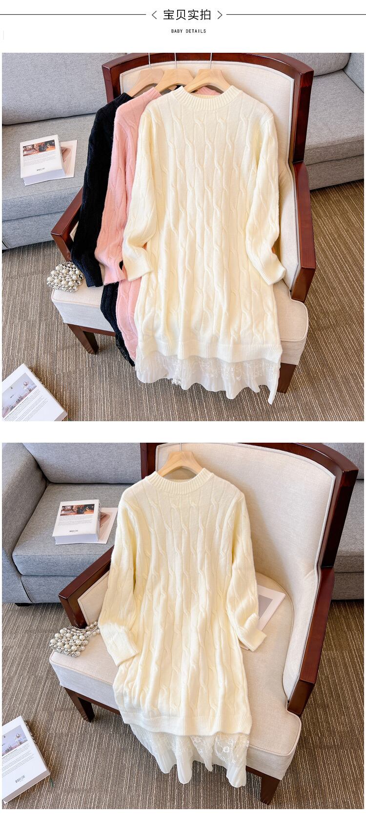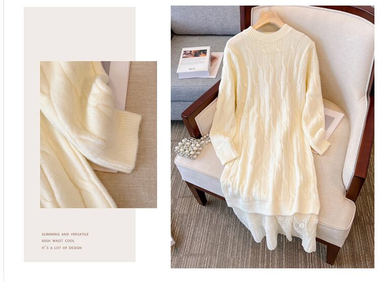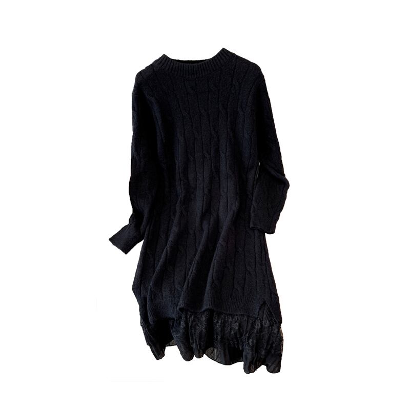 プラスサイズの婦人服 2023 ファットシスター春の新ボトミングスカートニットロングセクションレースルーズドレス女性 大きめサイズ スプリング 春物 8884139022601397