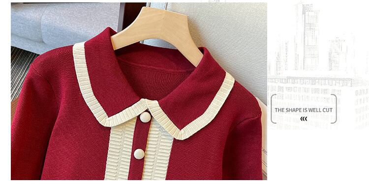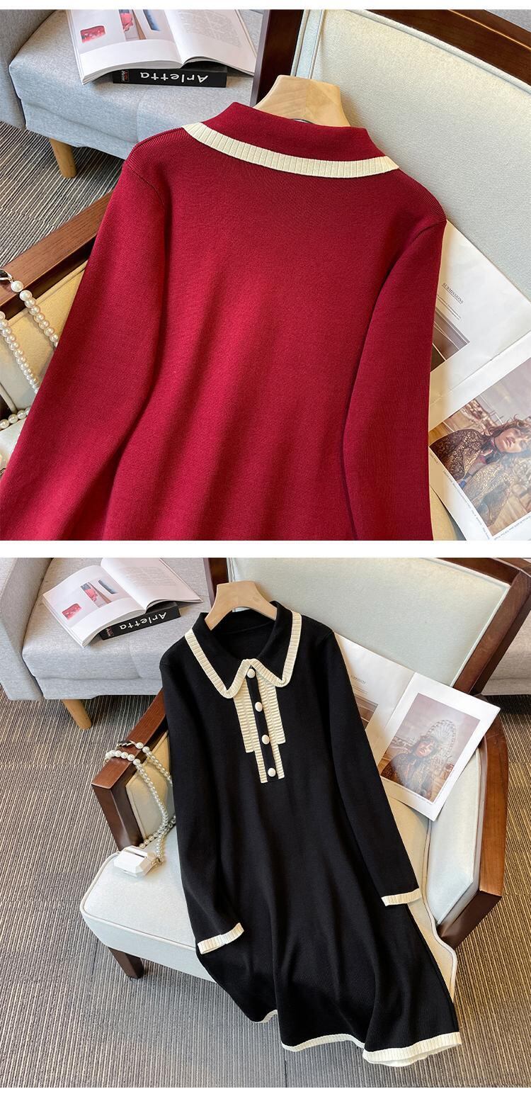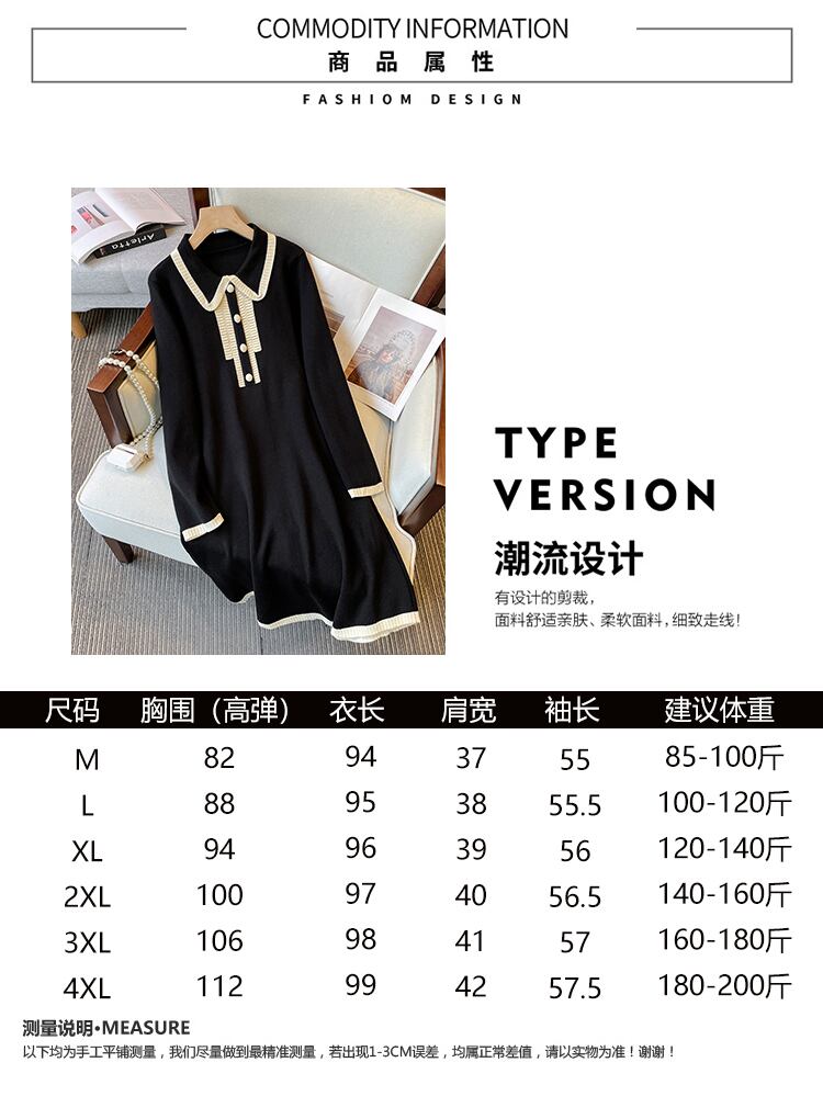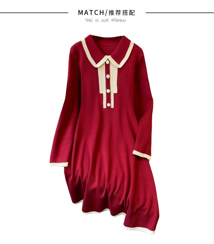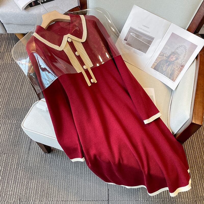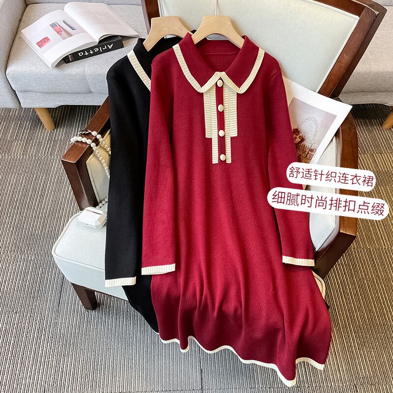 プラスサイズの婦人服 2023 ファットシスター春の新フランス人形の襟ウエストスリムニット A ラインドレス 大きめサイズ スプリング 春物 Aライン 8884193120093042