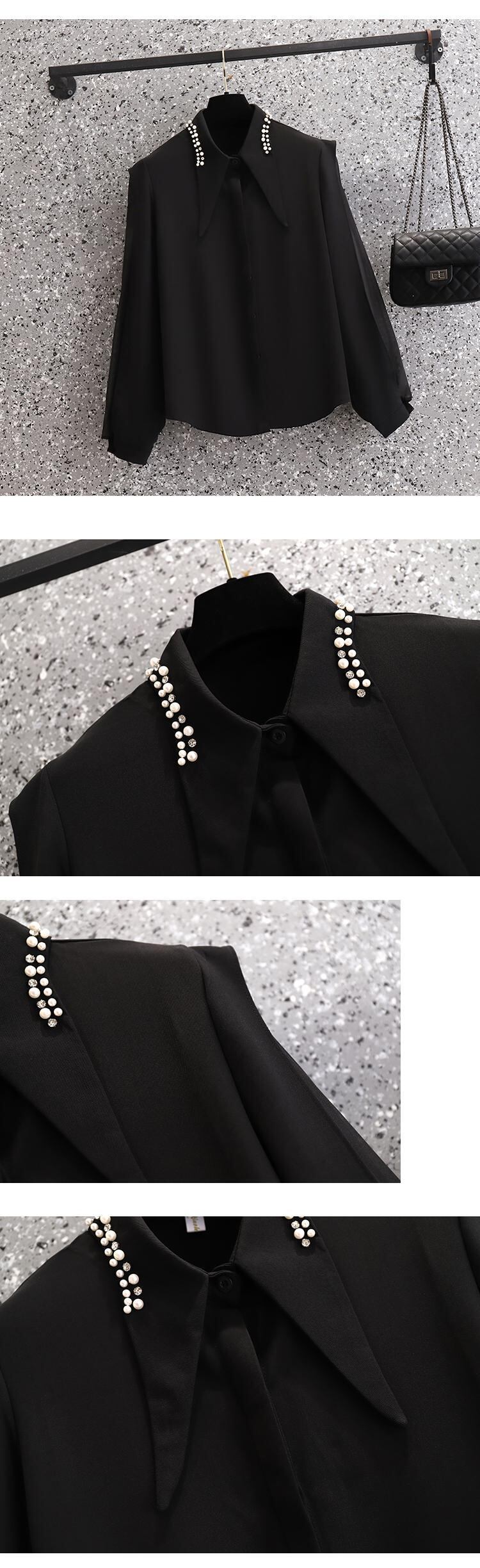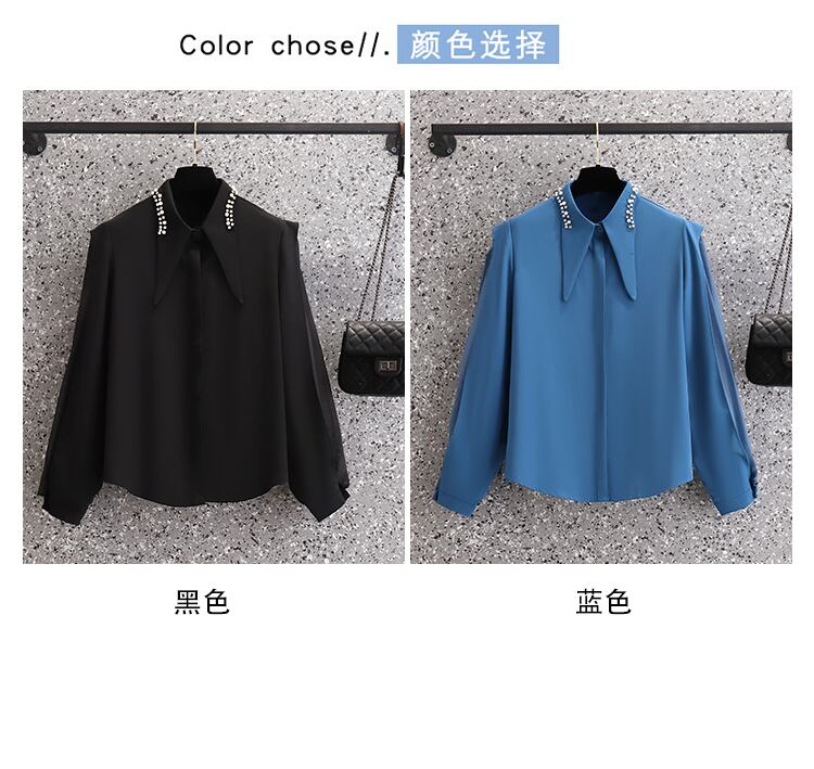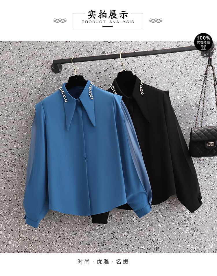プラスサイズの婦人服2023ファットシスター春の新デザインセンスレトロ全試合気質重工業ビーズステッチシャツ 大きめサイズ スプリング 春物 8884187854146313