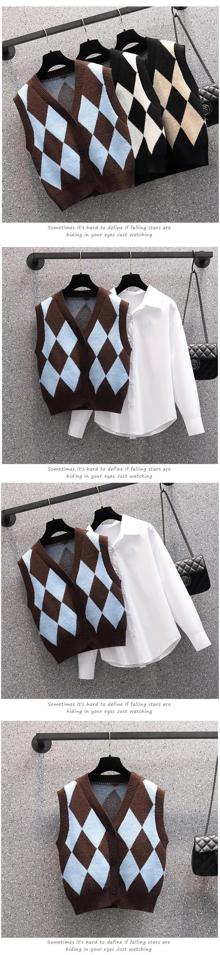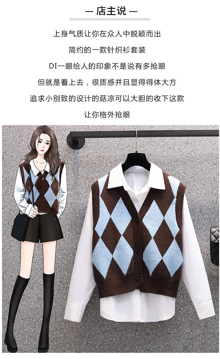 プラスサイズの婦人服 2023 春の新しいトレンディなスカートオールマッチ痩身と年齢を減らす菱形ニットセーターベストトレンド 大きめサイズ スプリング 春物 8884160923116235