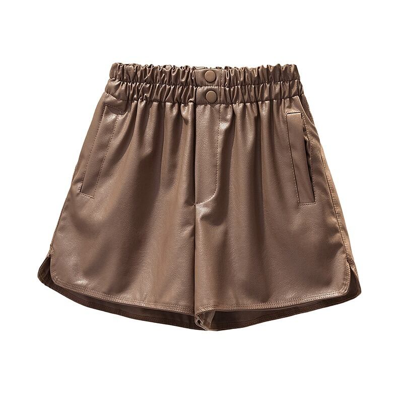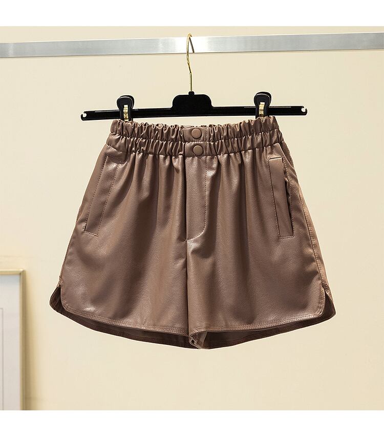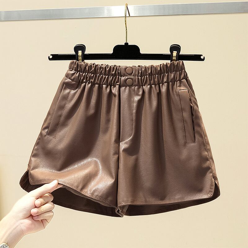 レザーパンツ女性の 2023 春の新大サイズの女性のファッションカジュアル弾性ハイウエストルーズワイドレッグショーツ ハイウェスト エラスティック 伸縮 大きめサイズ スプリング 春物 ブルマー ワイドパンツ 8884187051964283