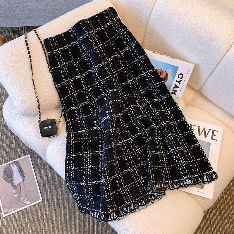 プラスサイズの婦人服 2023 ファットシスター春の新ファッション痩身コントラストカラー長袖セータースカート 2 点セット ロング 大きめサイズ スプリング 春物 8884116984718417