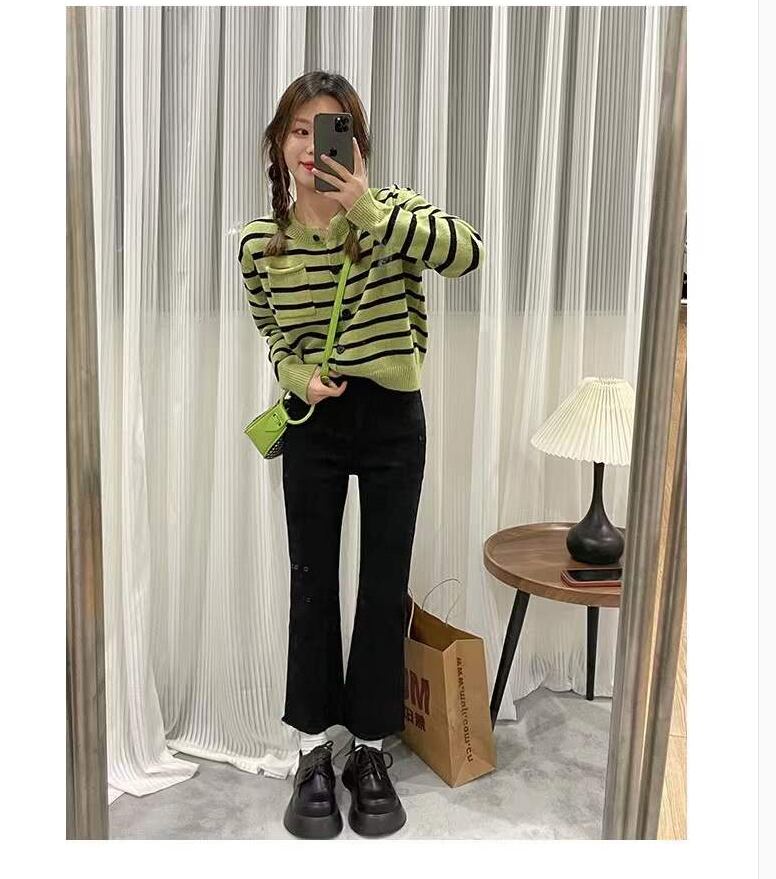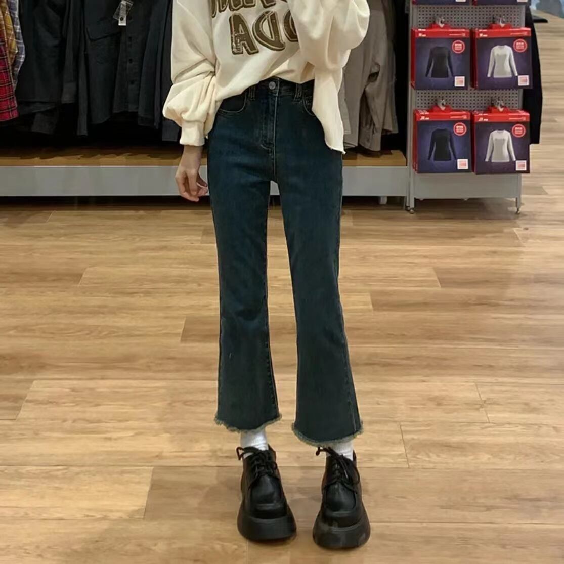 プラスサイズの婦人服 2023 ファットシスター春の新ジーンズハイウエストスリムレトロ生エッジ 9 点フレアパンツ女性 ハイウェスト レッド 大きめサイズ スプリング 春物 8884154252855405