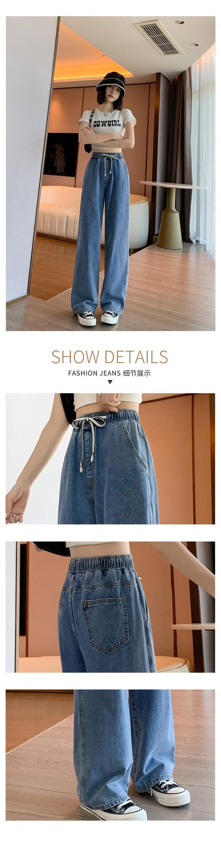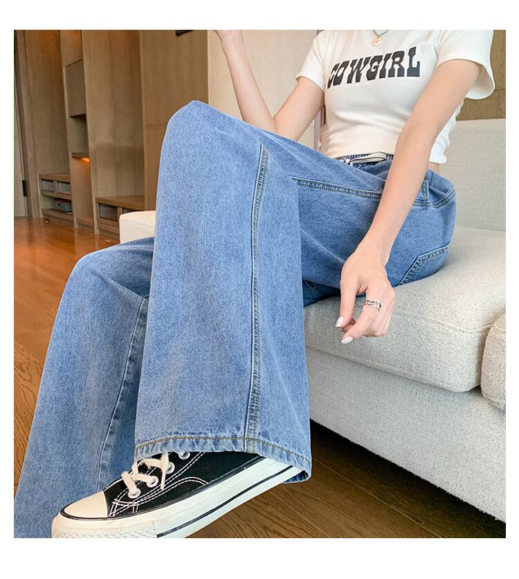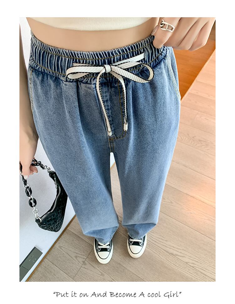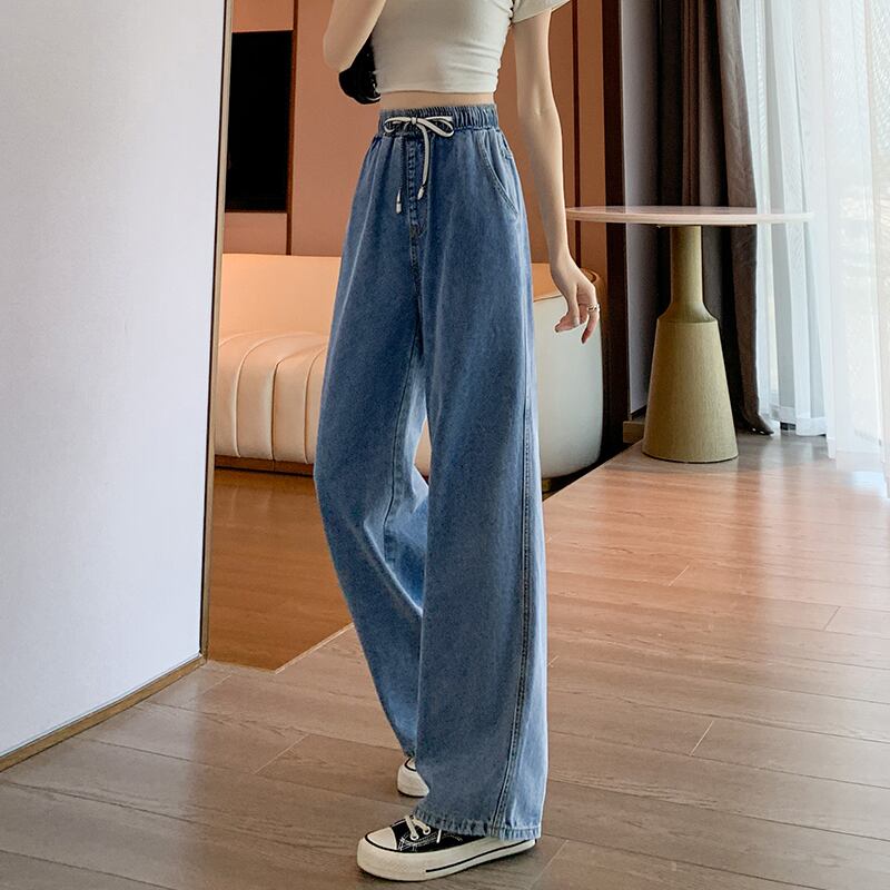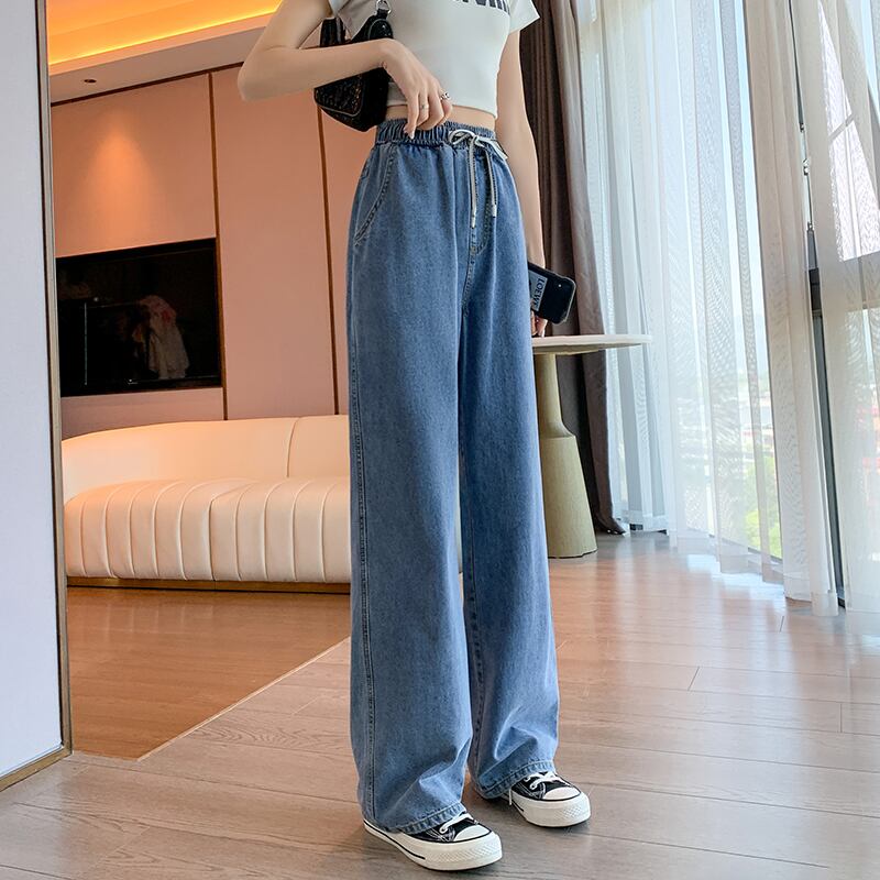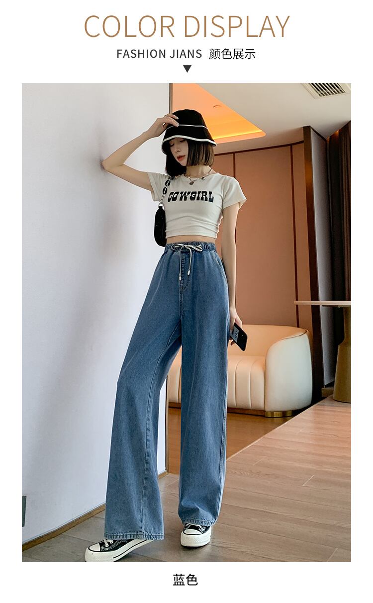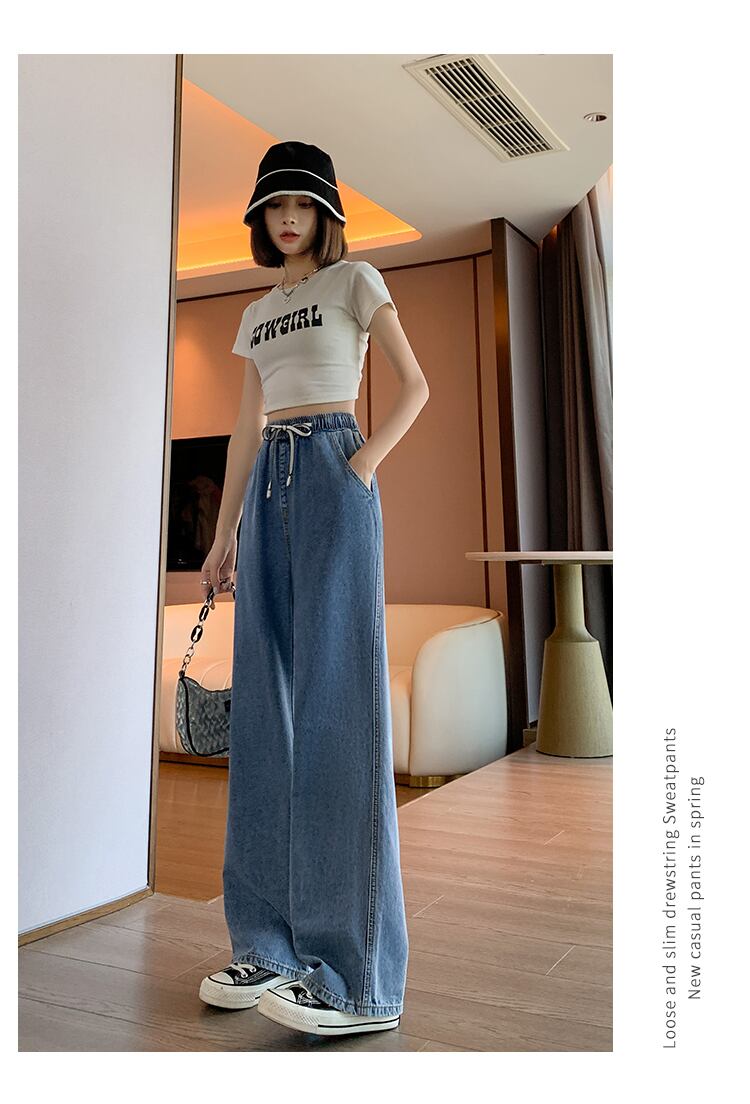 プラスサイズの婦人服 2023 ファットシスター夏の新ファッション弾性ハイウエストワイドレッグルーズカジュアルデニムズボン ハイウェスト エラスティック 伸縮 大きめサイズ サマー 夏物 ワイドパンツ 8884113437303048