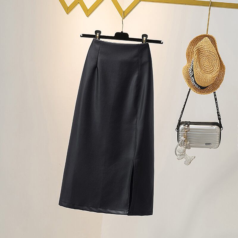 プラスサイズの婦人服 2023 脂肪姉妹春の新ファッションレトロハイウエスト薄型レザースカートスリットスカート女性 ハイウェスト 大きめサイズ スプリング 春物 8884110603678728