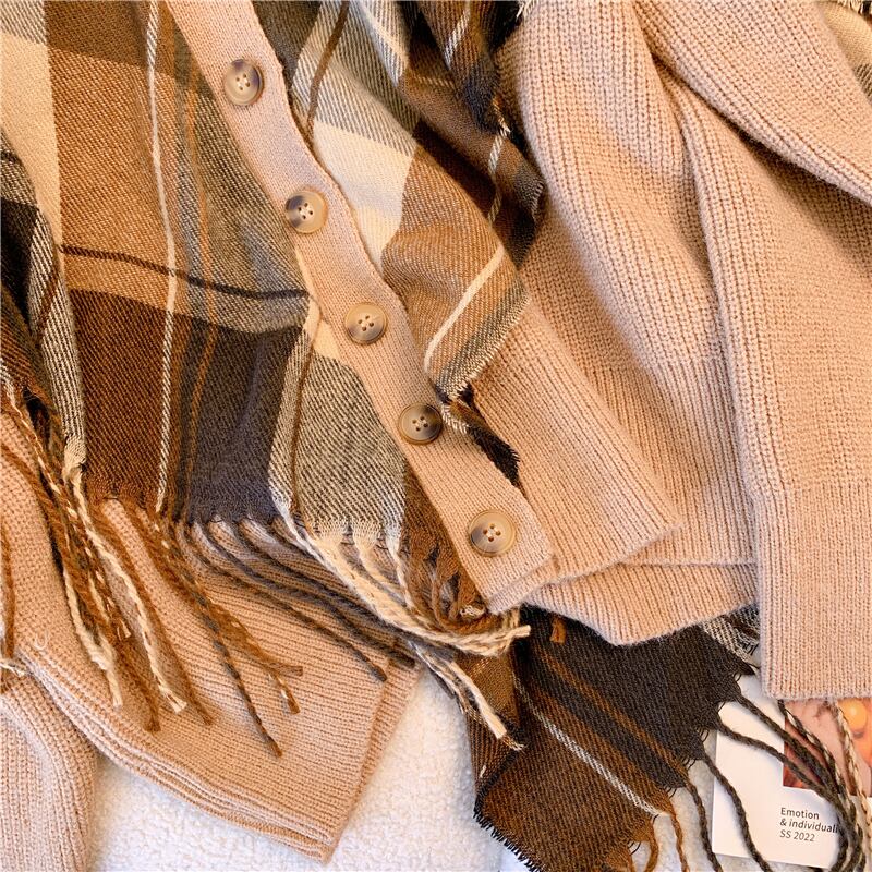 プラスサイズの婦人服 2023 ファットシスター春の新バージョンのカラーコントラストスカーフタートルネックトップス年齢を減らすニットセーターの女性 大きめサイズ スプリング 春物 8884169568278935