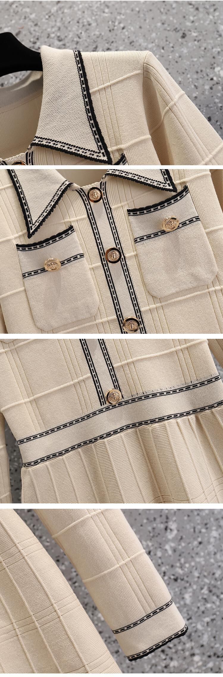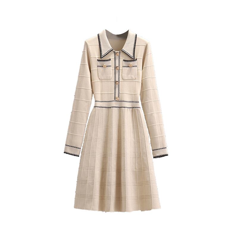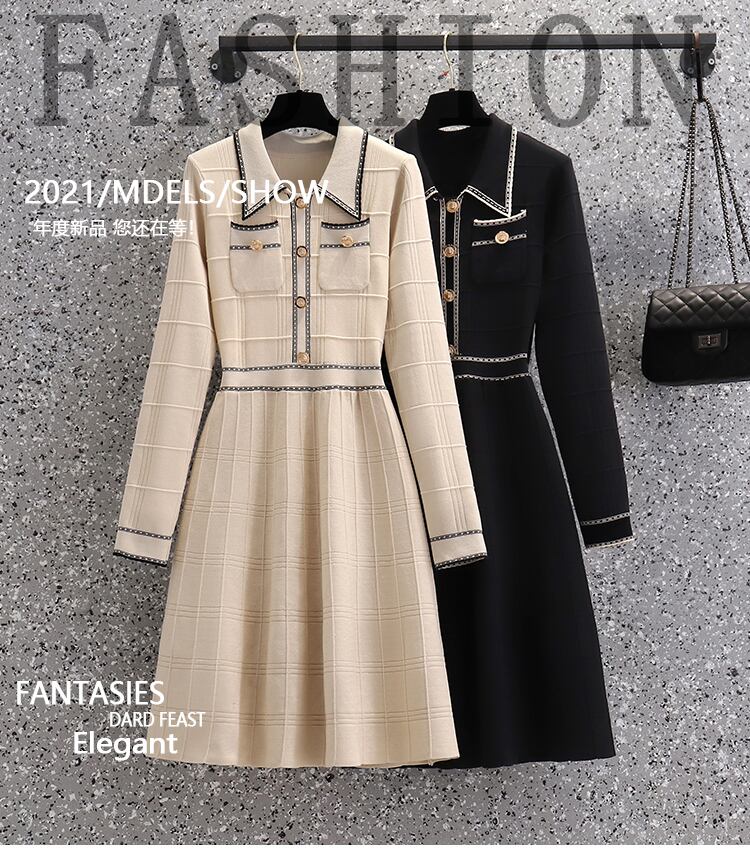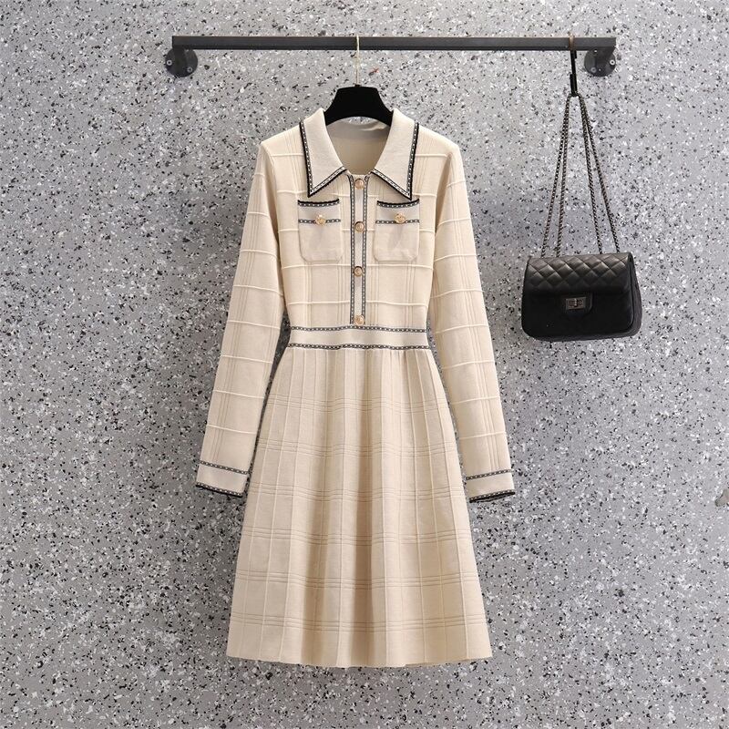 プラスサイズの婦人服 2023 太った姉妹春の新しいフレンチ スタイル ミッドレングス スリムな長袖ニット ドレス ロング 大きめサイズ スプリング 春物 8884151073647403