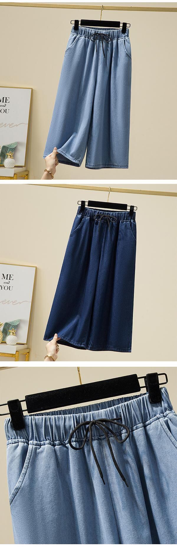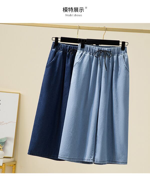 プラスサイズの婦人服2023ファットシスターサマーニュールーズテザー超薄型弾性ウエストカジュアルデニムクロップドパンツ エラスティック 伸縮 大きめサイズ 夏物 8884132388470280