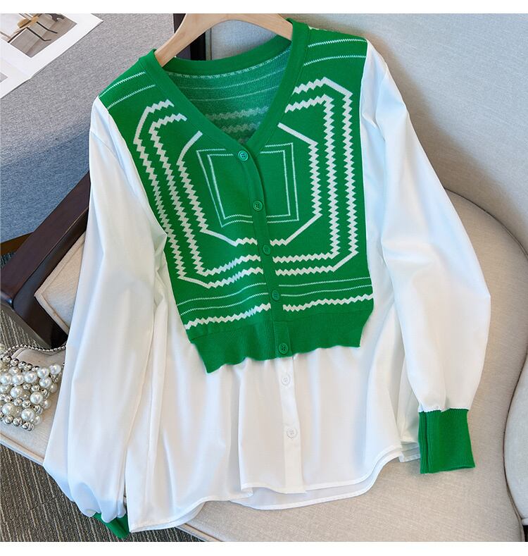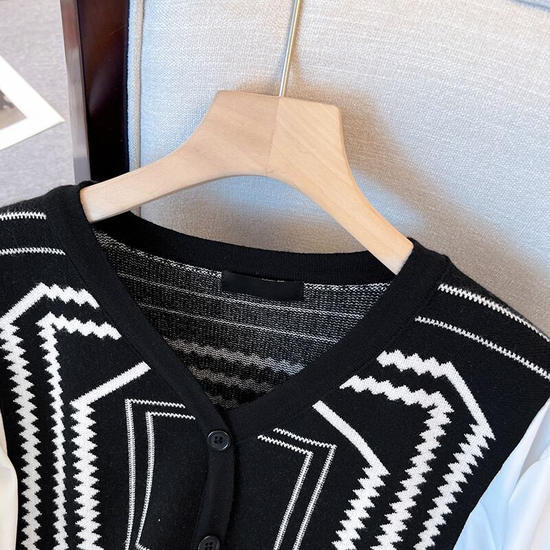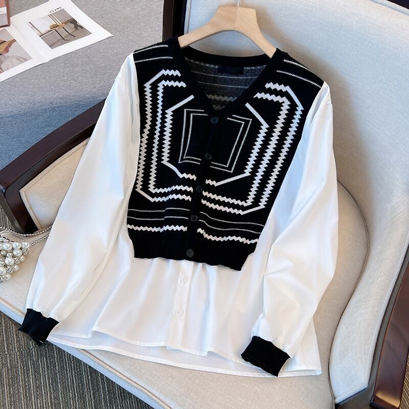 大きいサイズの婦人服 2023 トレンディな女性の春の新しい太った姉妹の年齢を減らすスプライシングすべての試合フェイク ツーピース ニット長袖セーター女性 ロング 大きめサイズ スプリング 春物 8884198683643747