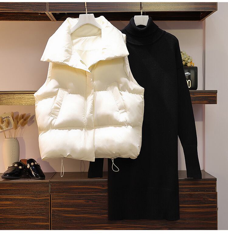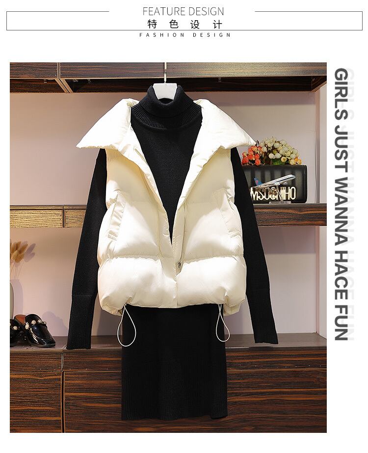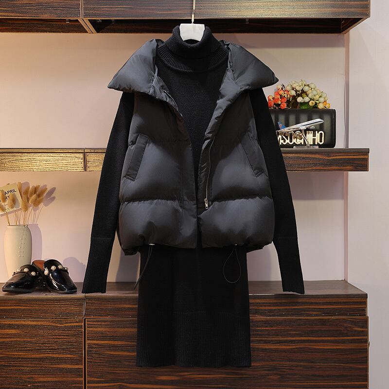 プラスサイズの婦人服 2023 ファットシスター春の新ファッションショートコットンベストコートタートルネックセーター 2 点セット 大きめサイズ スプリング 春物 8884128871884070