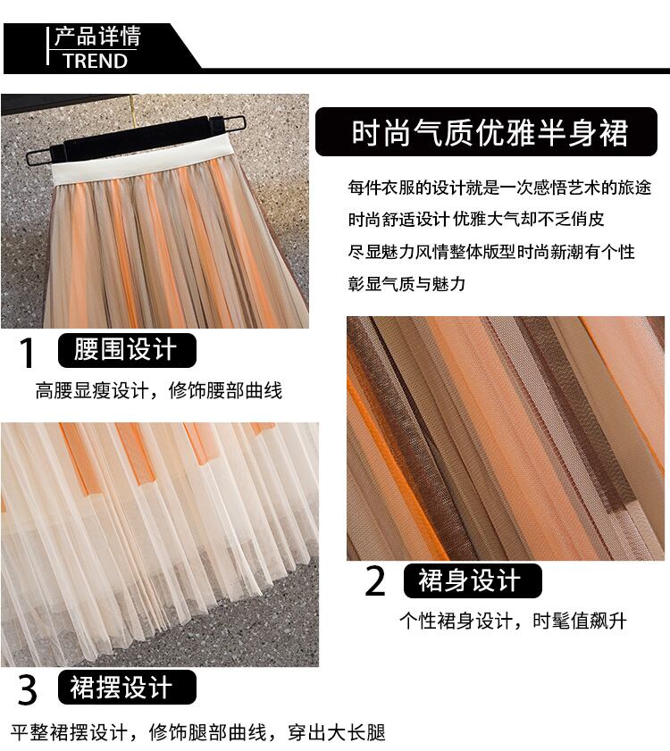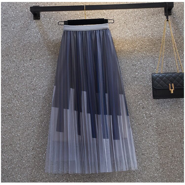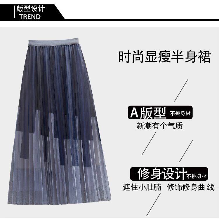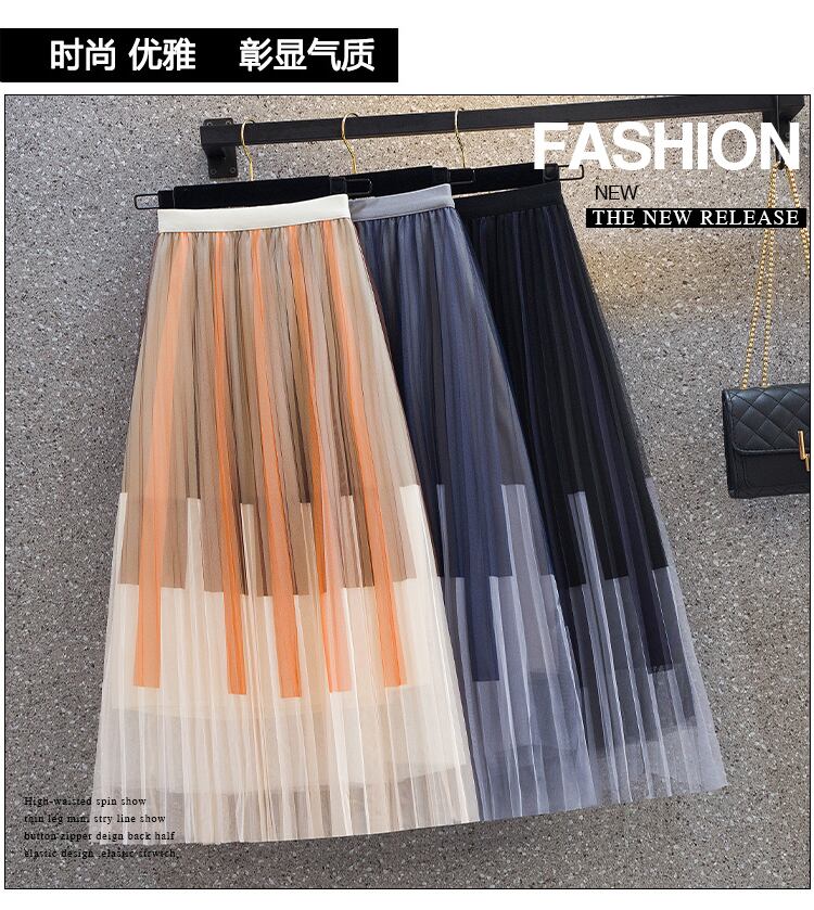 大きいサイズの婦人服 2023 春服脂肪姉妹新しい eign スタイル配色痩身プリーツ ミッドレングス メッシュ スカート 大きめサイズ スプリング 春物 8884182707780069