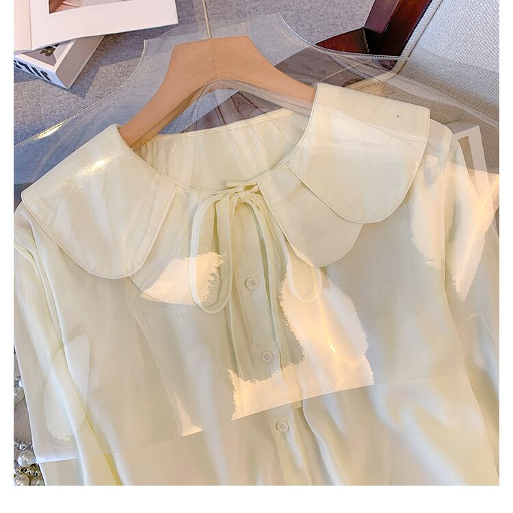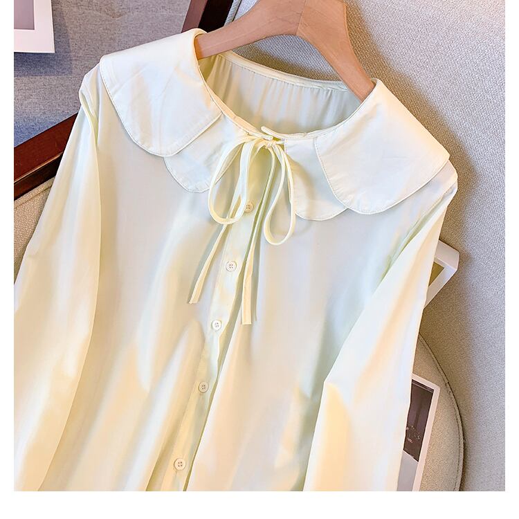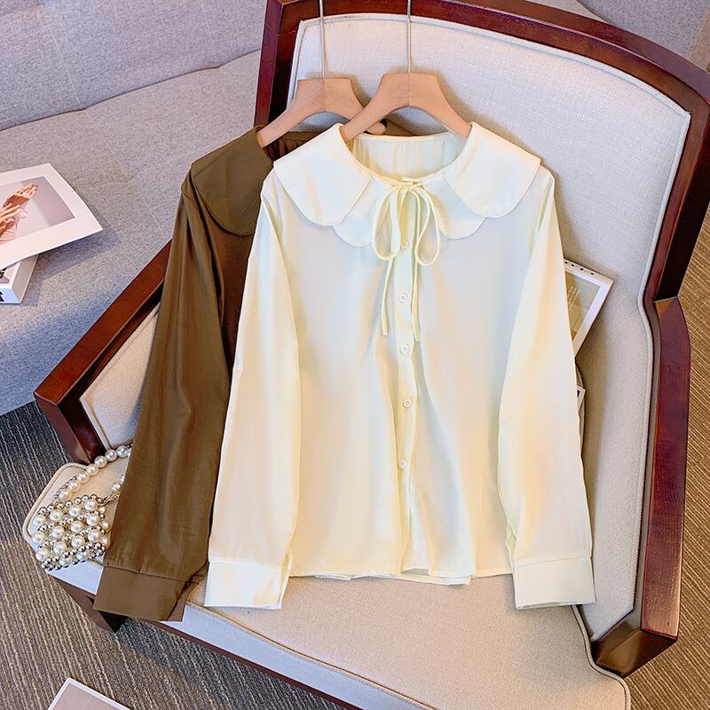プラスサイズの婦人服 2023 春の新しい太った姉妹年齢を減らすデザインセンス気質の人形の襟のレースの腹を覆うシャツの女性 大きめサイズ スプリング 春物 8884136257584502