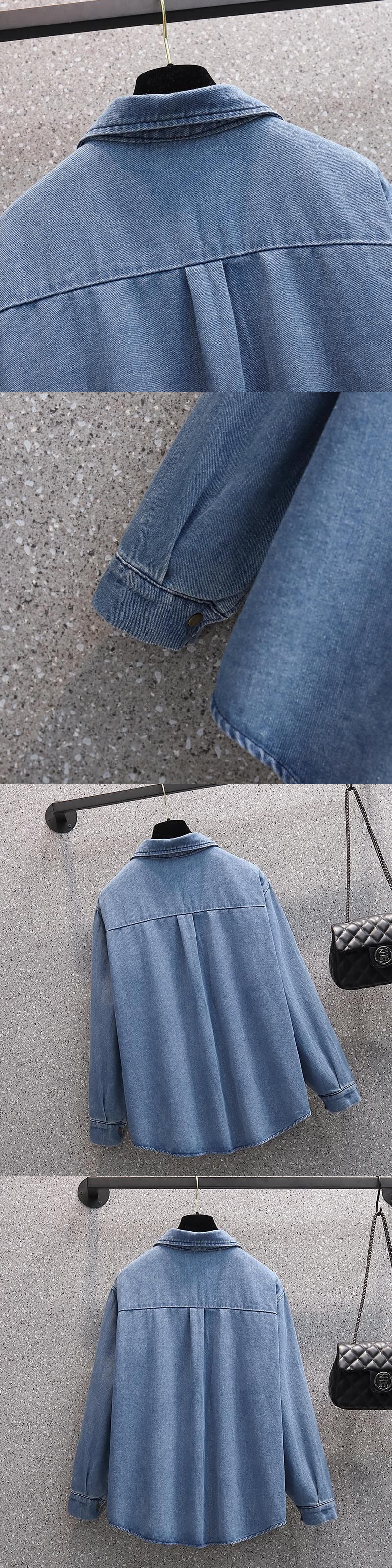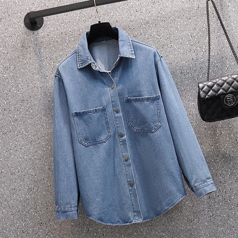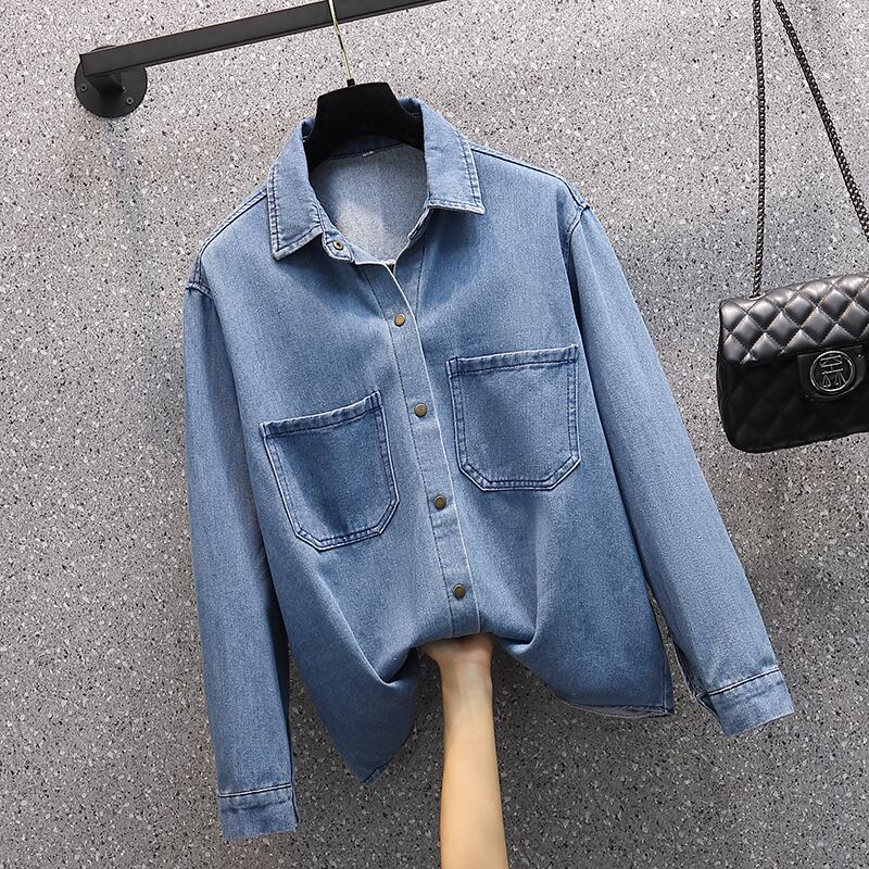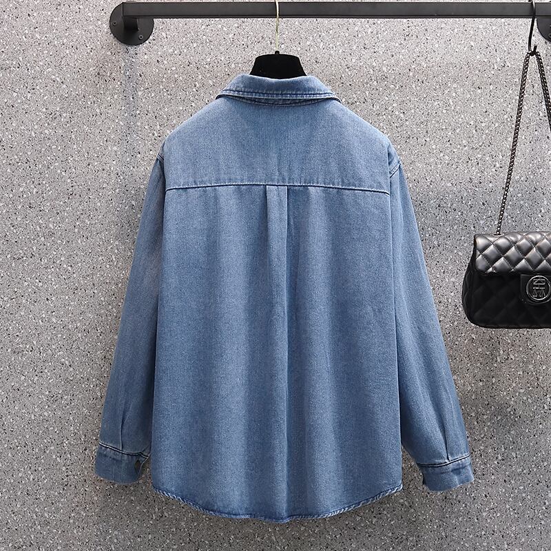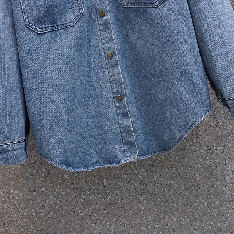 2023年春バージョンのファットシスターデニムシャツレディース長袖デザイン痩身感オールマッチ大きめサイズのエインスタイルジャケット ロング スプリング 春物 8884143396255774