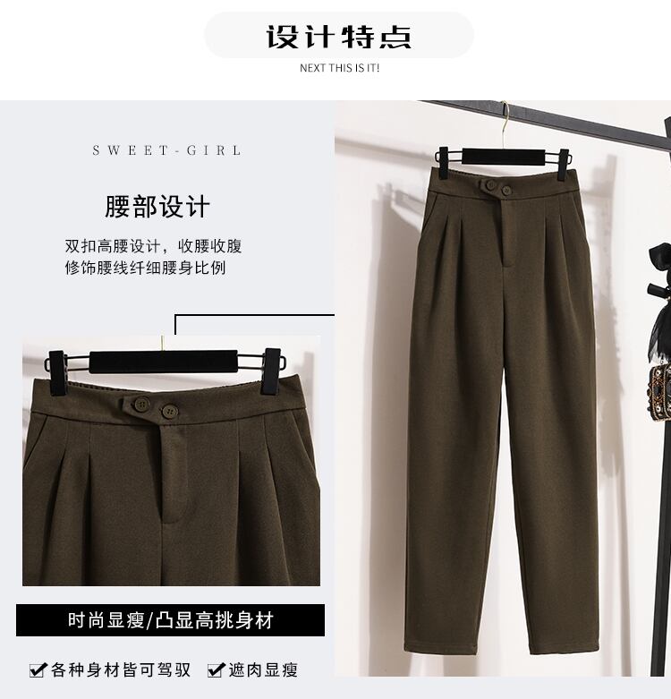 大きいサイズの新しい春 2023 女性のファッションフレンチハイウエスト薄い無地ウールハーレム大根カジュアルパンツ ハイウェスト 大きめサイズ スプリング 春物 ソリッドカラー 8884177722560837