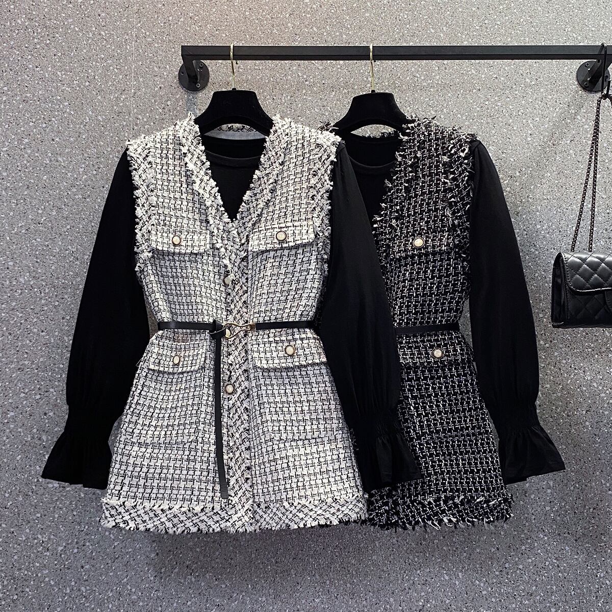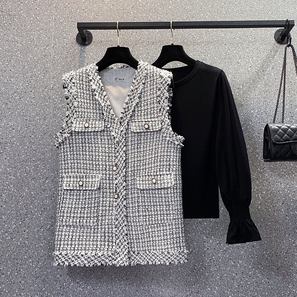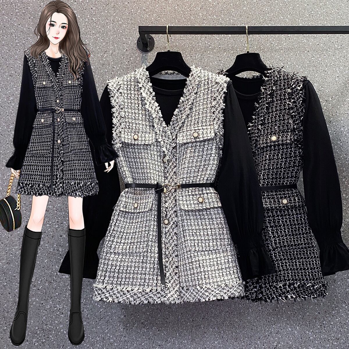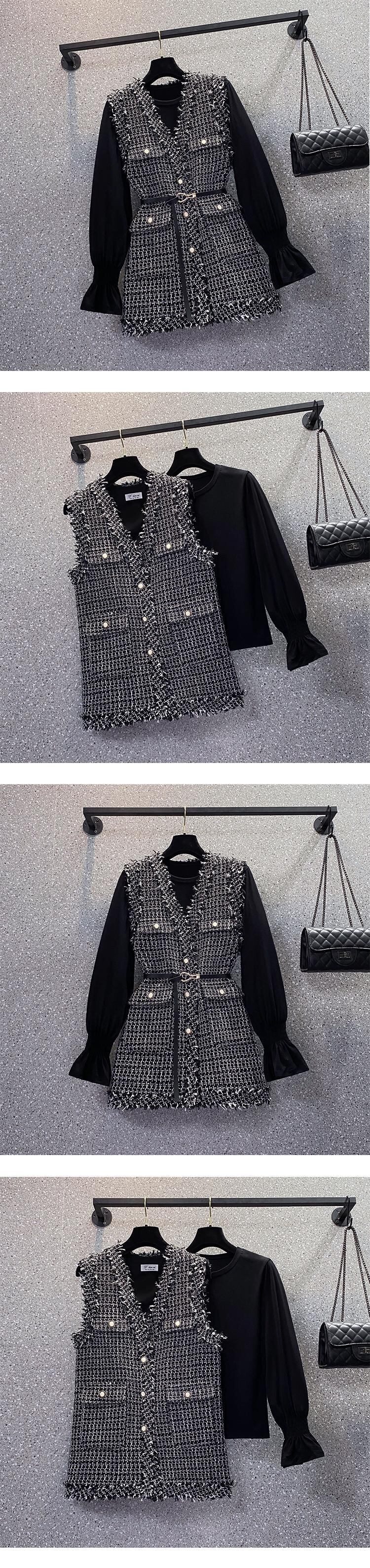 プラスサイズの婦人服 2023 脂肪姉妹春の新しい eign スタイルの年齢を減らす痩身ツイード ベスト シャツ 2 点セット 大きめサイズ スプリング 春物 888416555075514