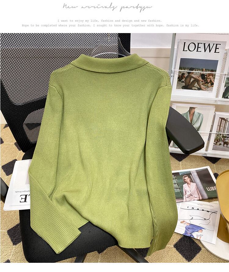 プラスサイズの婦人服 2022 ファットシスター秋と冬の新しいセーター底入れシャツ緩いポロ襟セータートップ女性 大きめサイズ オータム 秋物 ウィンター 冬物 8884190251234902