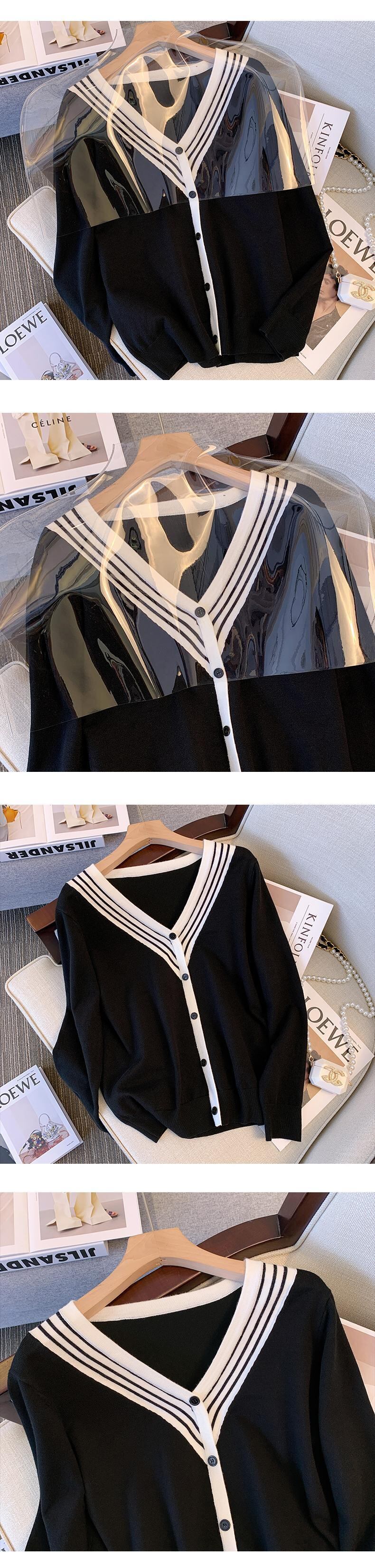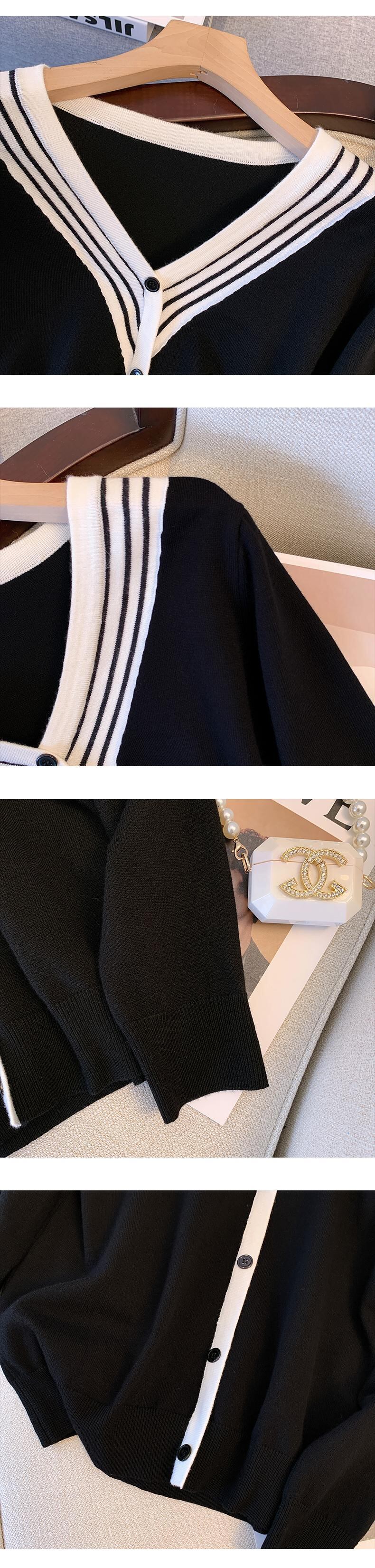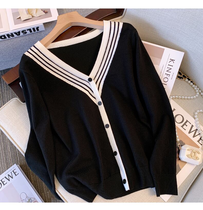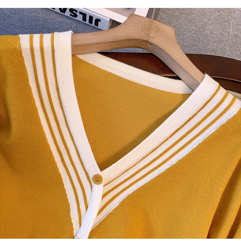 プラスサイズの婦人服 2023 春服ファットシスターズ新ファッションカラーコントラスト v ネックニット底入れシャツセータートップス女性 大きめサイズ スプリング 春物 Vネック 8884111029909452