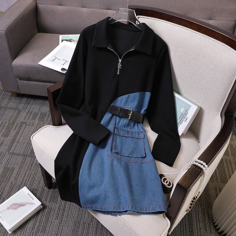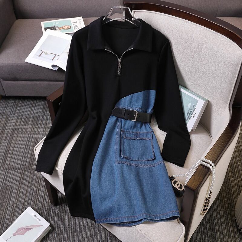 プラスサイズの婦人服 2022 トレンディな女性の冬の新しいファットシスター eign スタイルデニムスプライシング不規則な痩身ドレス 大きめサイズ ウィンター 冬物 8884195828829702
